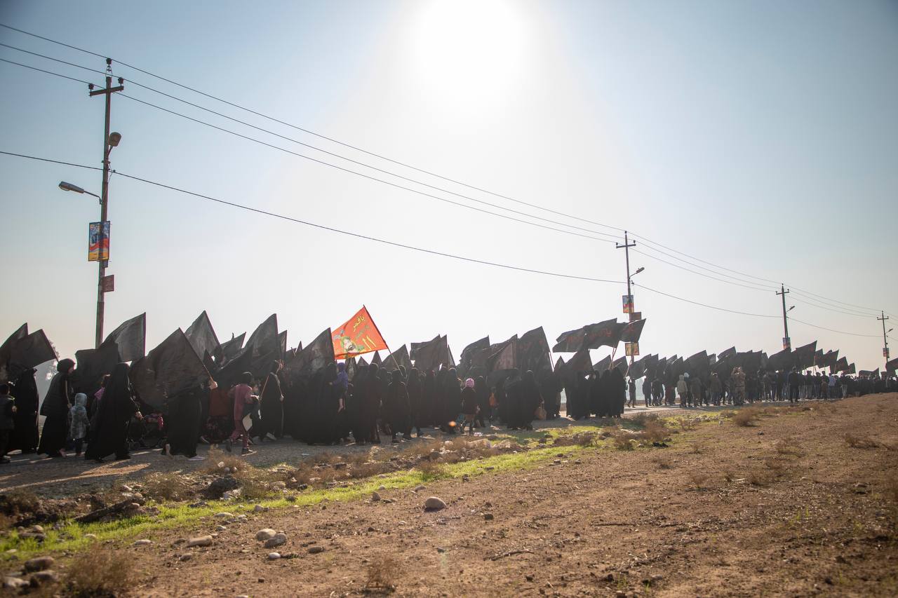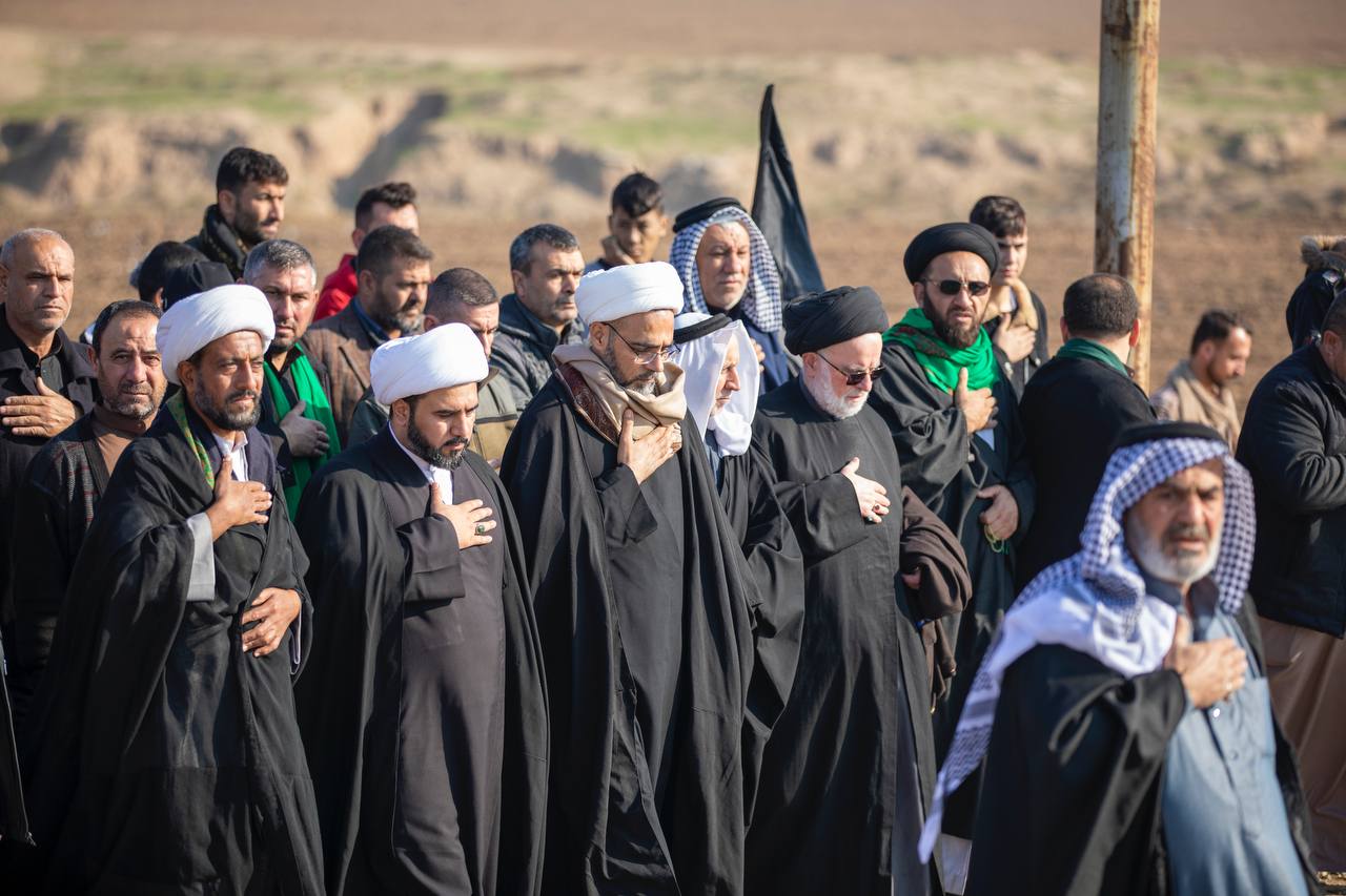 وأضاف "المسيرةُ تقدّمَها نعش رمزي سار حوله وجهاءُ المناطق وأعيانُهم وممثّلون عن حكوماتهم المحلّية والأمنيّة، وقد التحفت السوادَ ورُفعت فيها الراياتُ والشعاراتُ العزائيّة والولائيّة، مجدّدين البيعة بالثبات على هذا النهج والسير على خطى صاحبة الذكرى ".