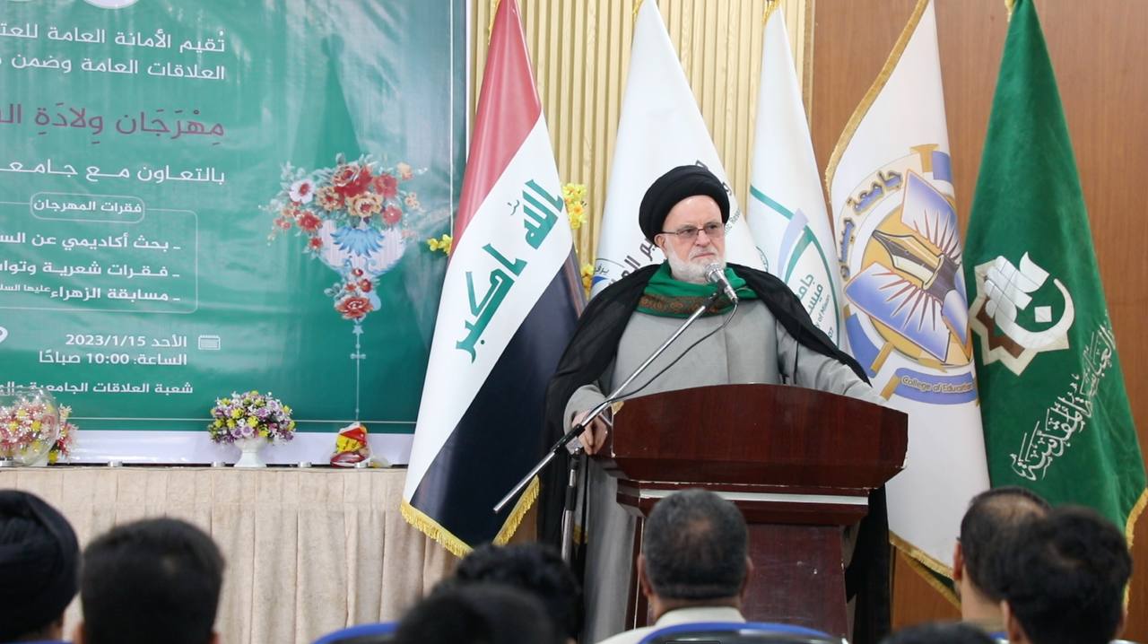 حضور ومشاركة لقسم الشؤون الدينية بفعاليات مهرجانَ ولادة السيّدة فاطمة الزهراء في جامعة ميسان..