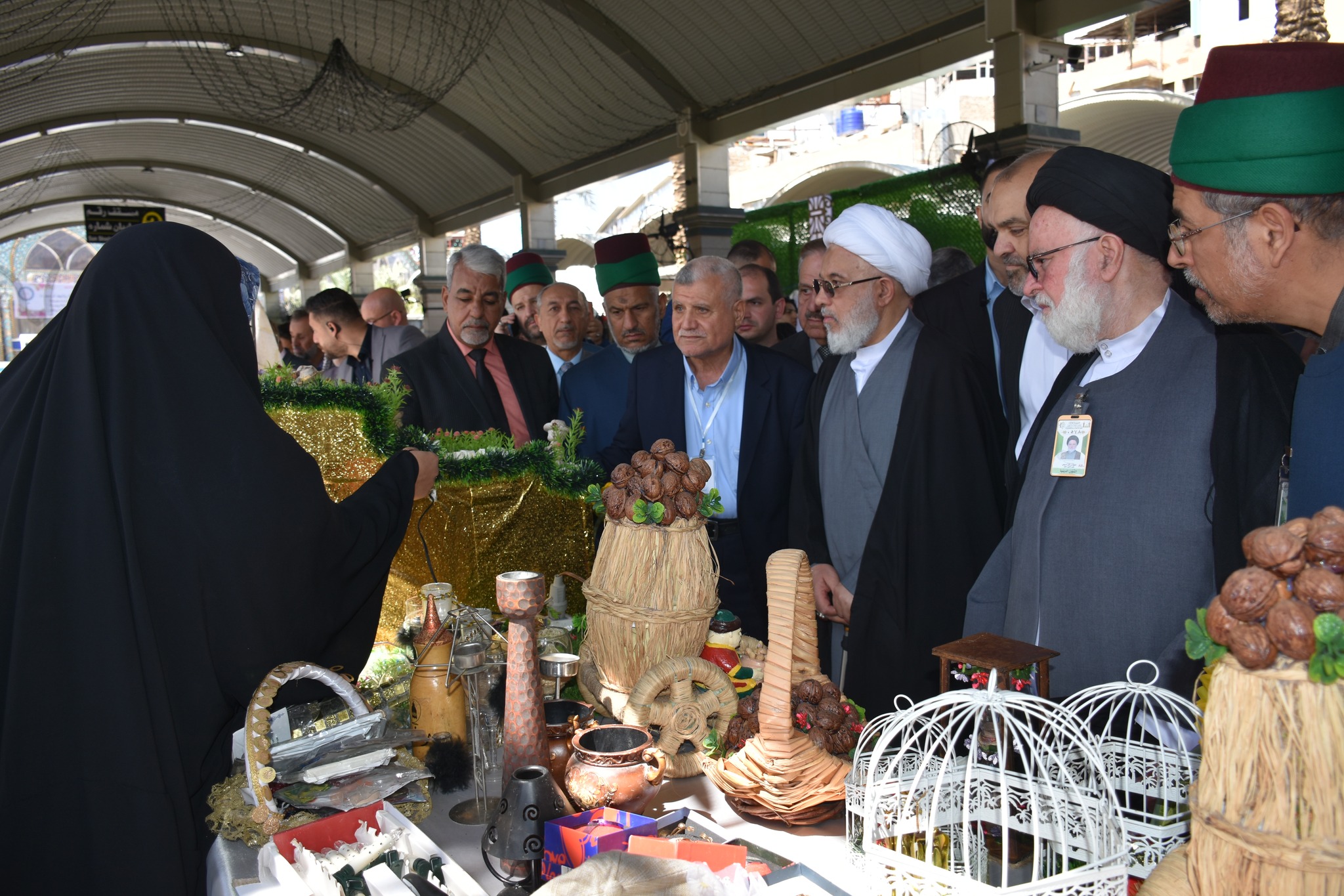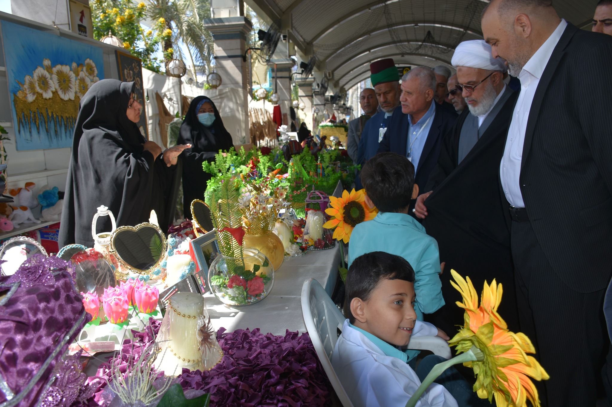 وقد مثل القسم السيد عدنان جلوخان الموسوي والذي بين إن المعرض وهو عبارة عن سوق خيري لعرض وبيع نتاجات الأرامل والعوائل المتعففة لصناعات حرفية يدوية من خياطة وحياكة وصناعة اكسسوارات ونجارة وأعمال فنية كالرسم والحفر على الزجاج ولوحات خط رائعة وصناعات ريفية فلكلورية مأخوذة من سعف النخيل.