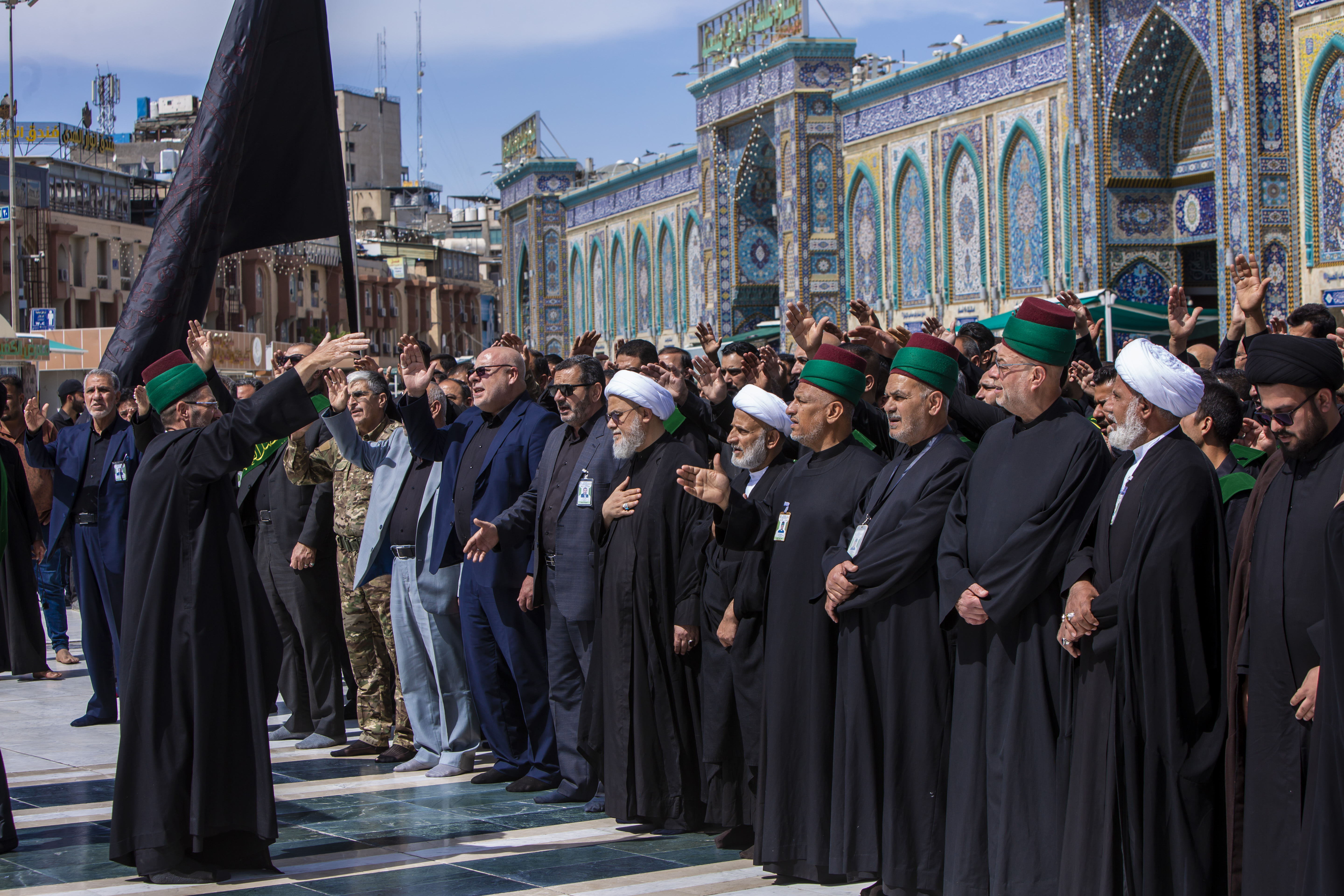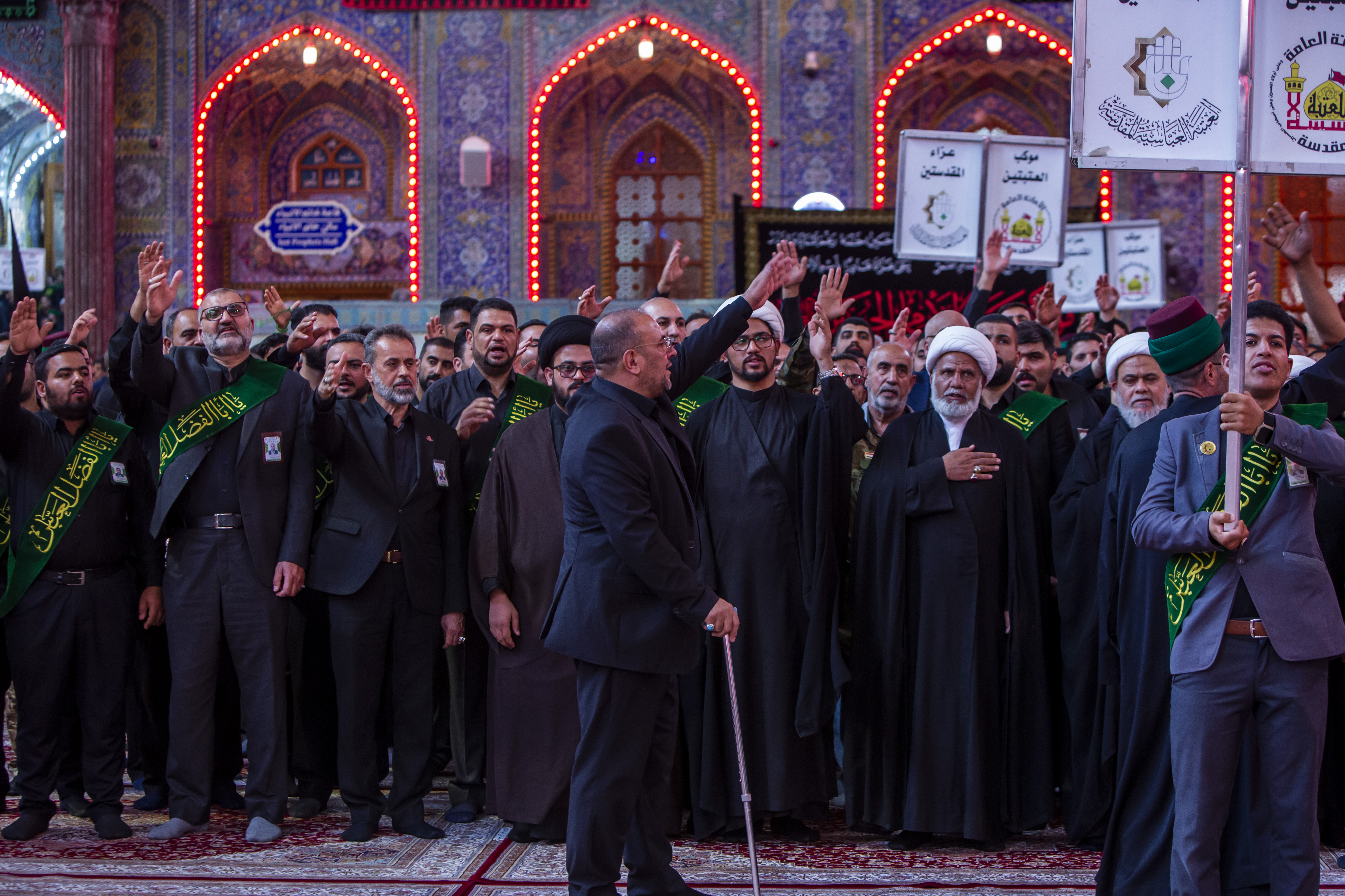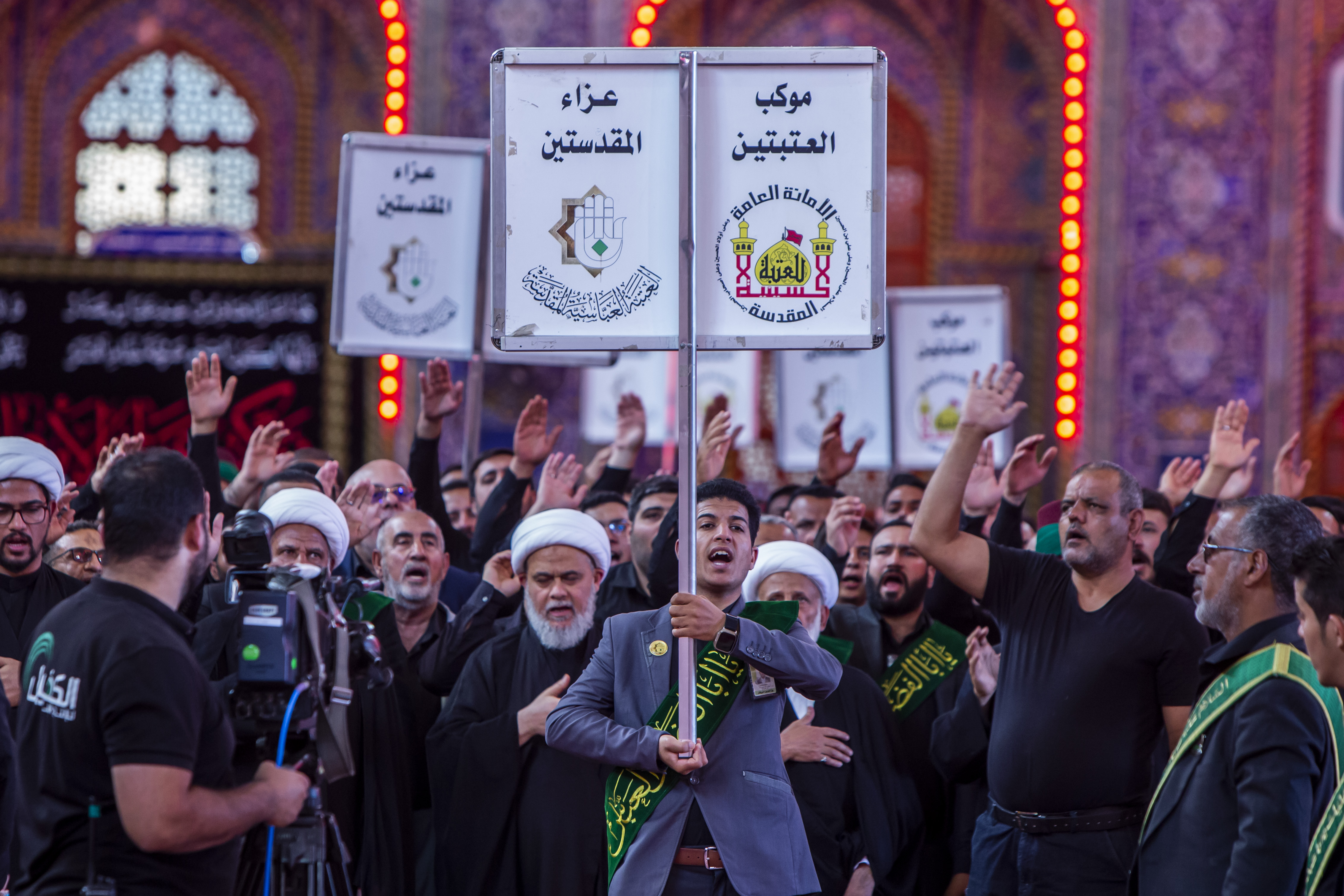 وشارك في موكب العزاء كوكبة من رجال الدين والسادة الخدم وزائري العتبتين ،واحيوا المشاركين مجلس عزاء موحّد في حرم سيد الشهداء أبي عبد الله الحسين(عليه السلام).