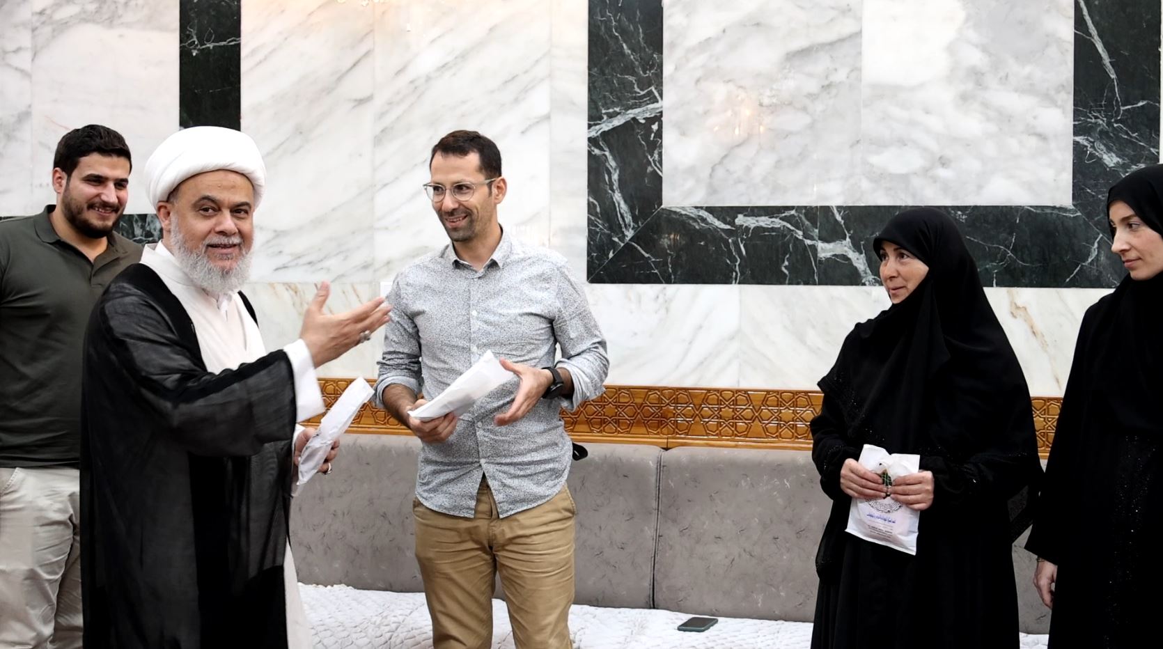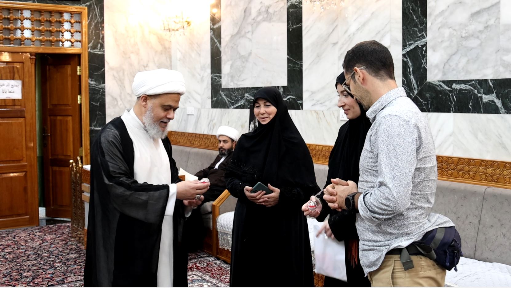 وقال رئيس القسم الشيخ صلاح الكربلائي إن "استقبال عائلة المستبصرة الفرنسية يأتي ضمن برنامج يتبنّاه القسم بهدف خلق حلقات تواصل تعمّق أواصر الارتباط بالأئمة الأطهار"، مبيناً "أثناء استقبال المستبصرة وعائلتها قدّمنا لهم مجموعة من النصائح، وبعض التعليمات التي أوصى بها أهل البيت(عليهم السلام)، إضافة إلى هدايا تبركية من صحن أبي الفضل العباس(عليه السلام)".