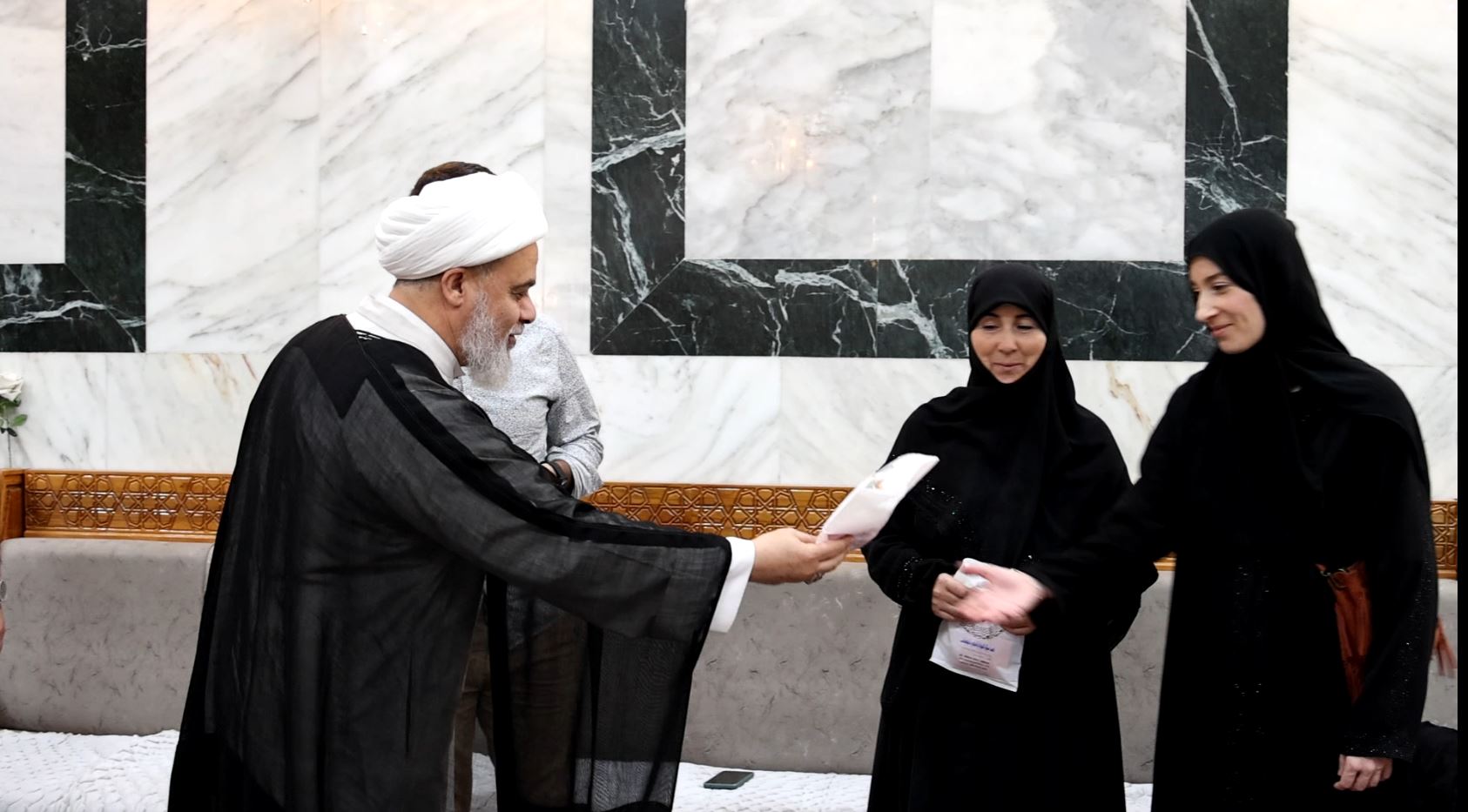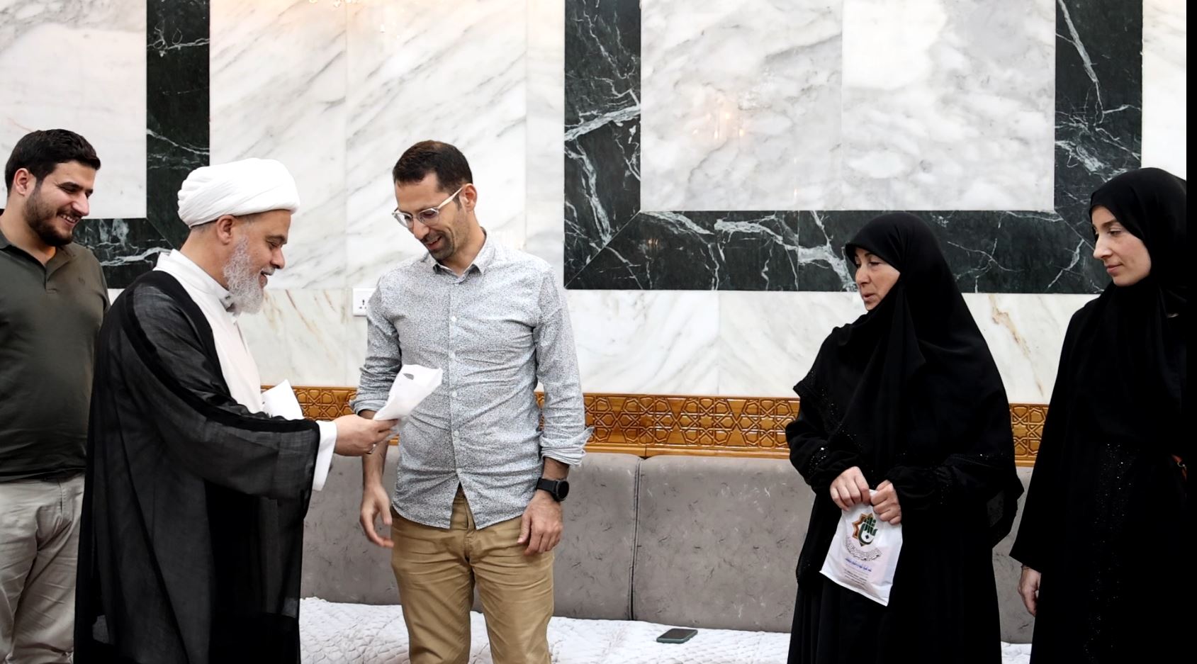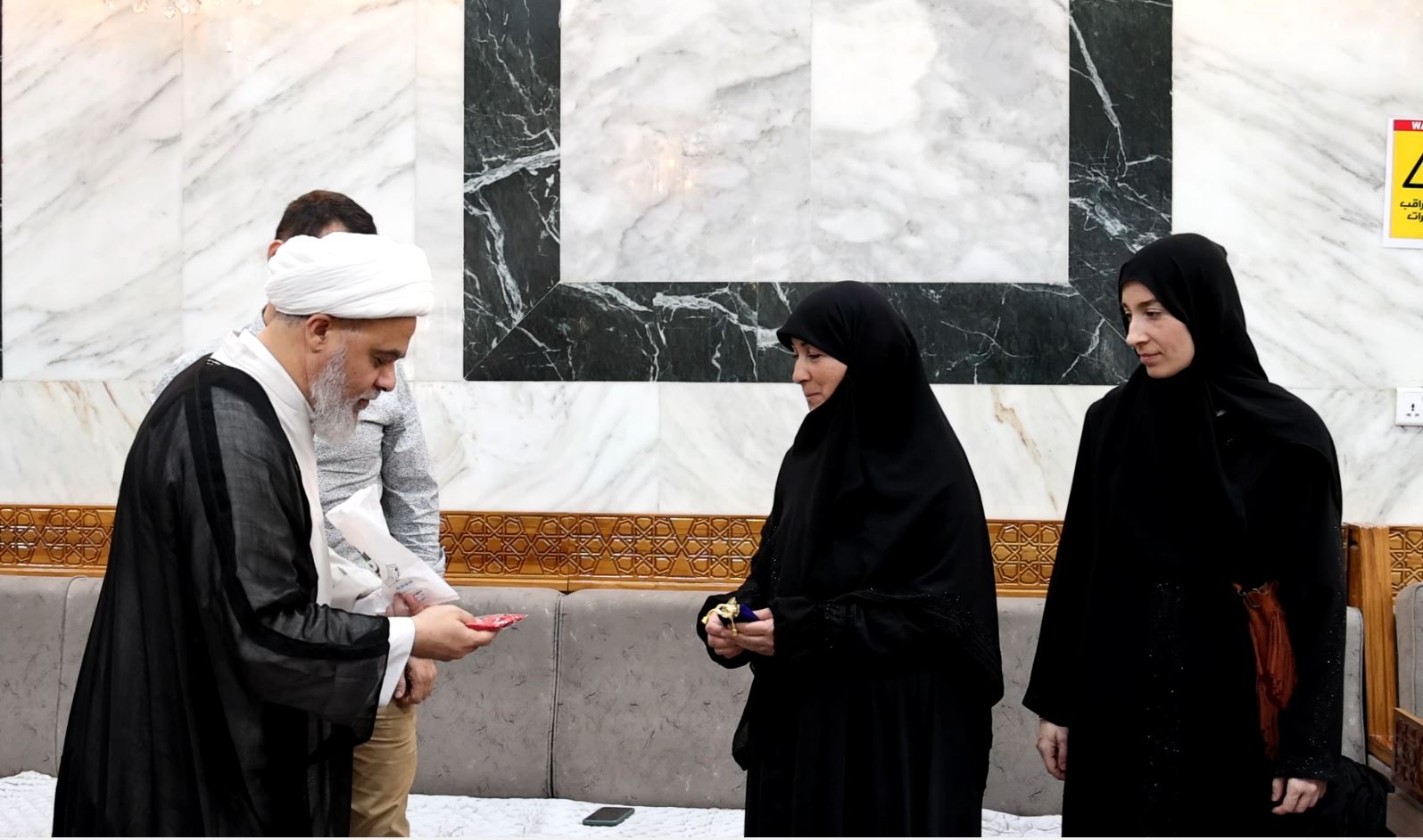 كرّم قسم الشؤون الدينية في العتبة العباسية المقدسة، المستبصرة الفرنسية جان نيكولازيكي التي اعتنقت الدين الإسلامي مؤخّراً، في صحن أبي الفضل العباس(عليه السلام).