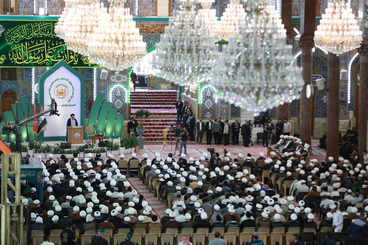 وأضاف "شهدت فعاليات المؤتمر حضور المتولي الشرعي للعتبة الحسينية المقدسة سماحة الشيخ عبد المهدي الكربلائي إلى جانب الأستاذ في الحوزة العلمية سماحة السيد محمد صادق الخرسان، وعدد من العلماء والخطباء وطلبة الحوزات العلمية، بالإضافة إلى جمع من المبلغين والمبلغات من مختلف المحافظات".