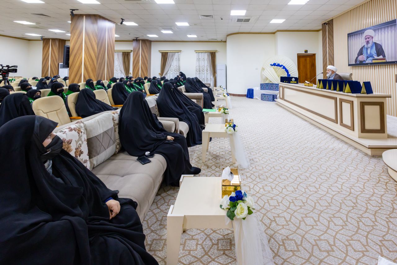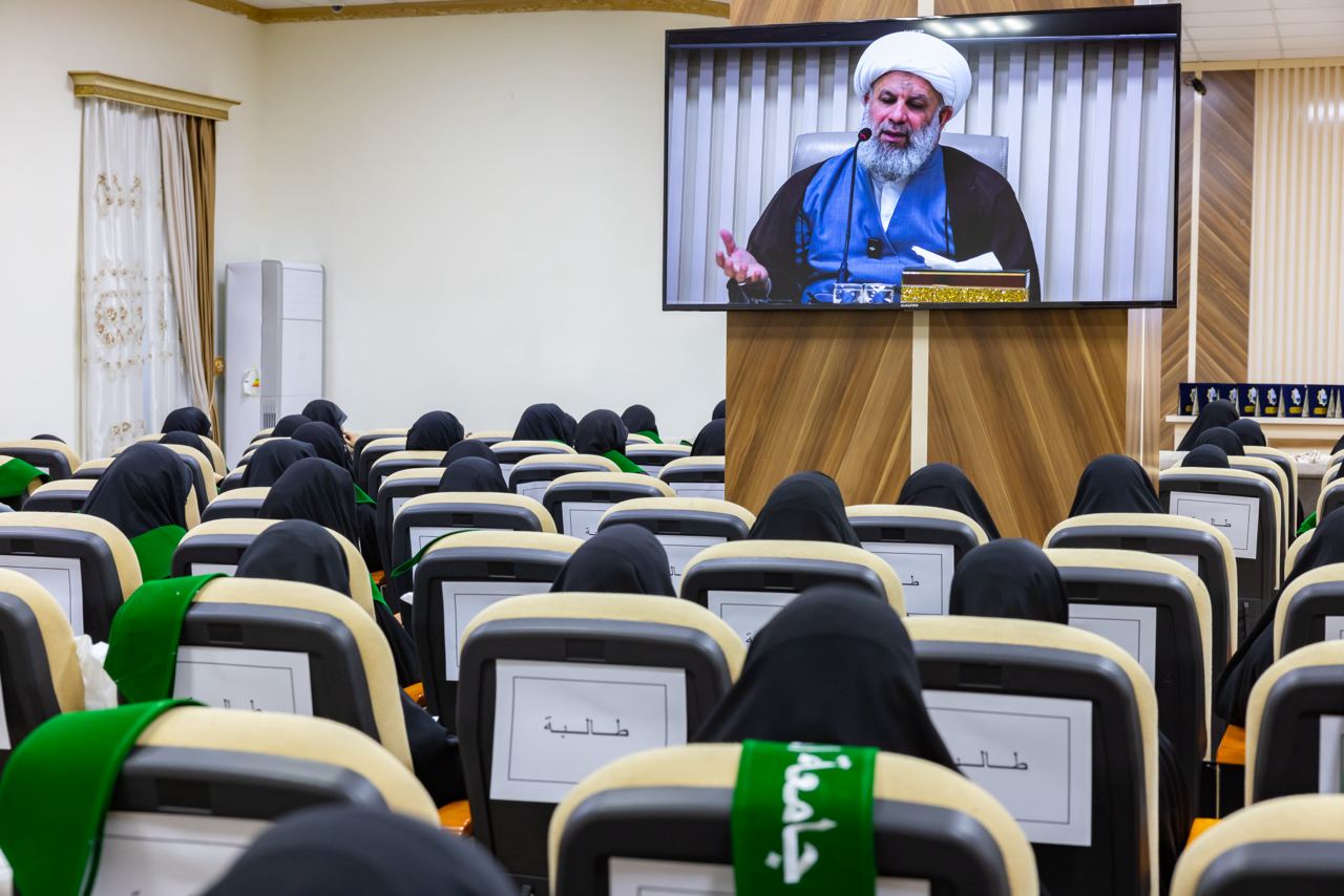معاون رئيس قسم الشؤون الدينية يلقي محاضرة بحفل تخرج طالبات جامعة أم البنين عليها السلام الألكترونية النسوية