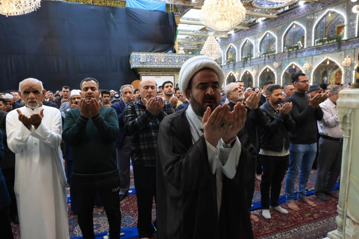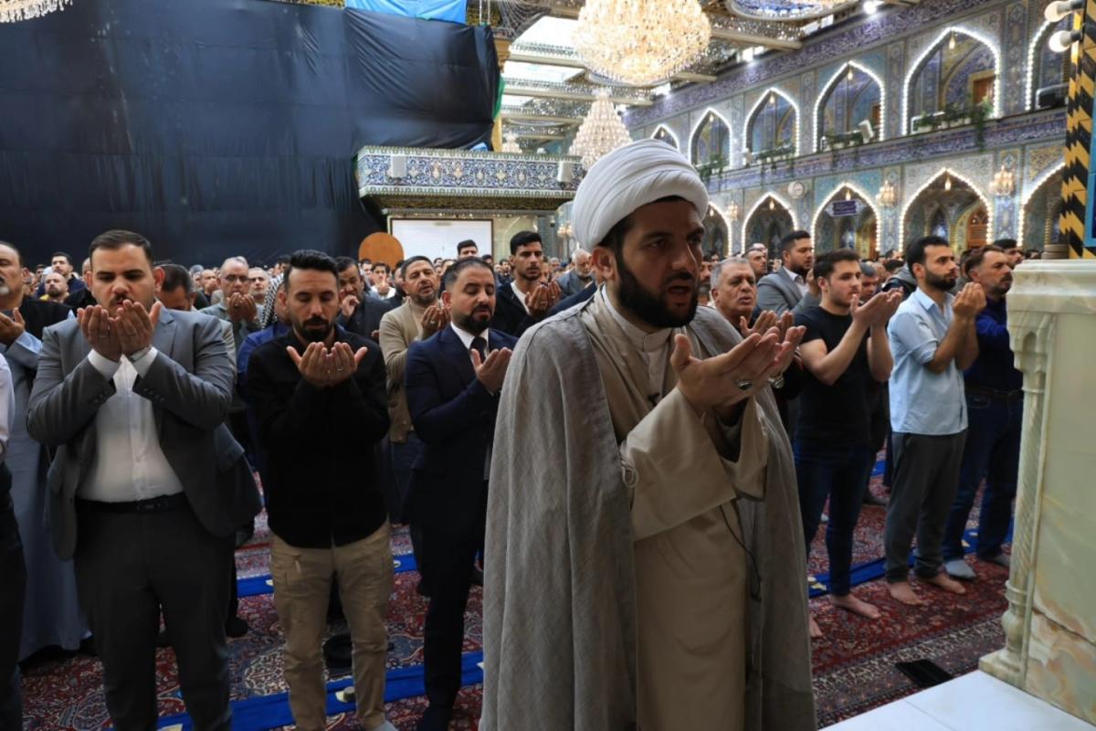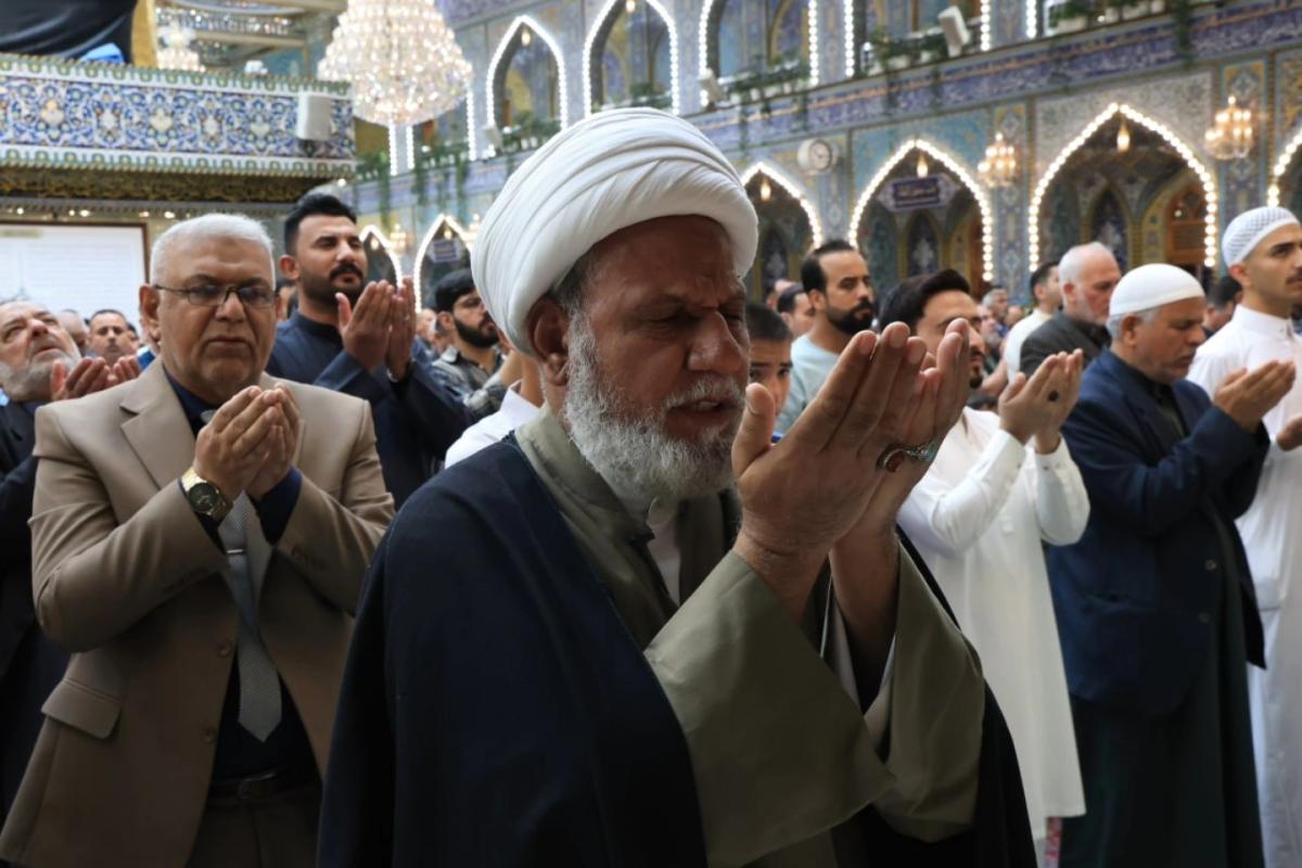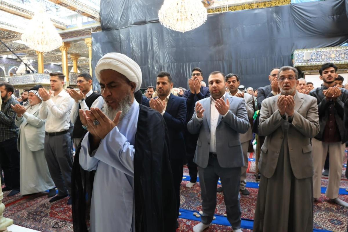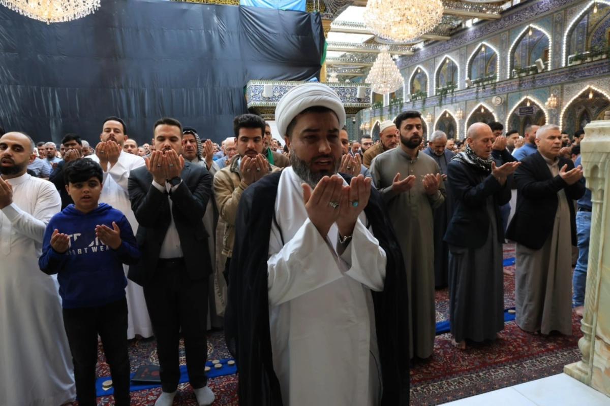 وأُقِيمت الصلاةُ الأولى بإمامة رئيس القسم الشيخ صلاح الكربلائي، تلتها اثنتا عشرة صلاة أخرى لتسهيل مشاركة الزائرين وتمكينهم من أداء صلاة عيد الفطر المبارك.