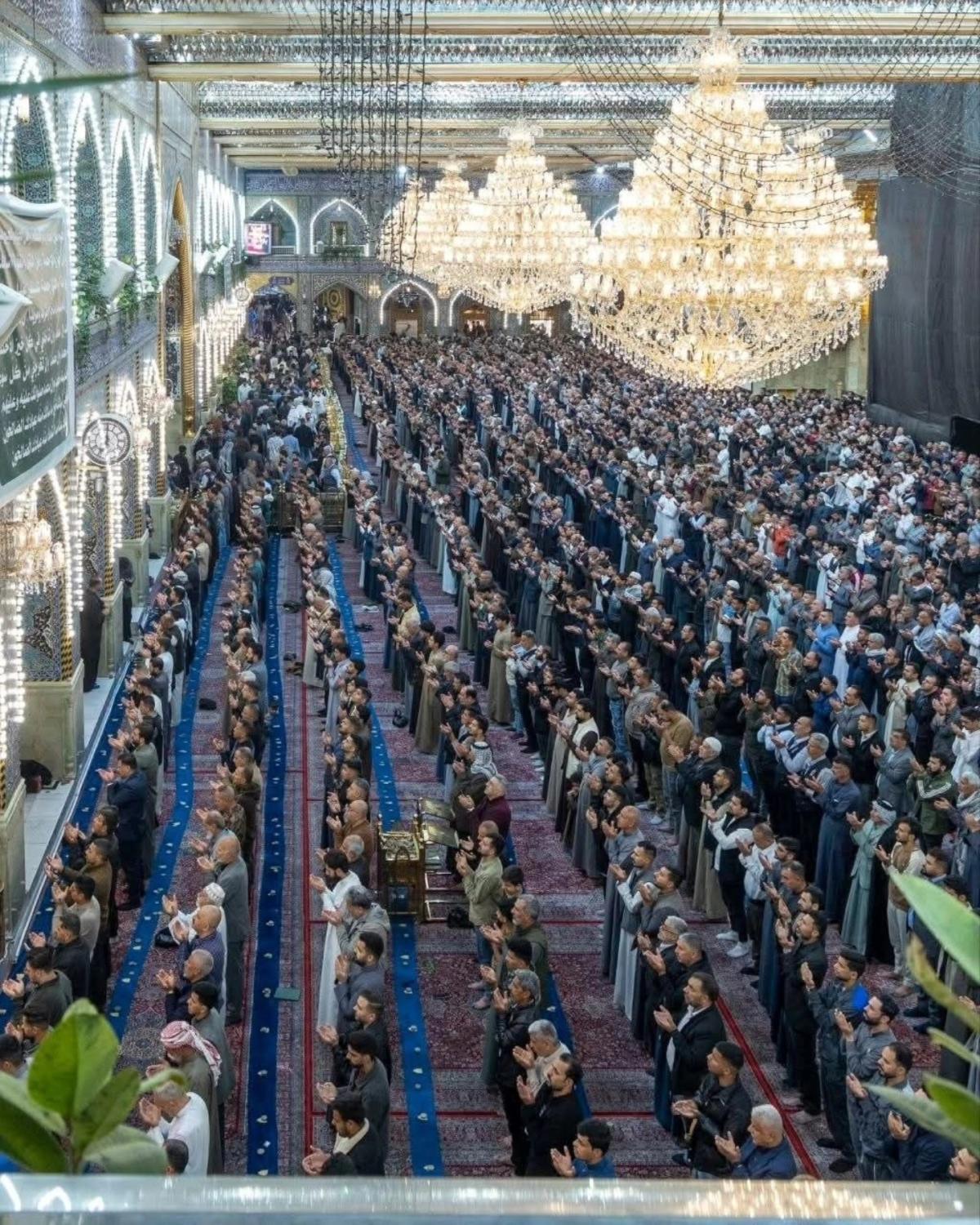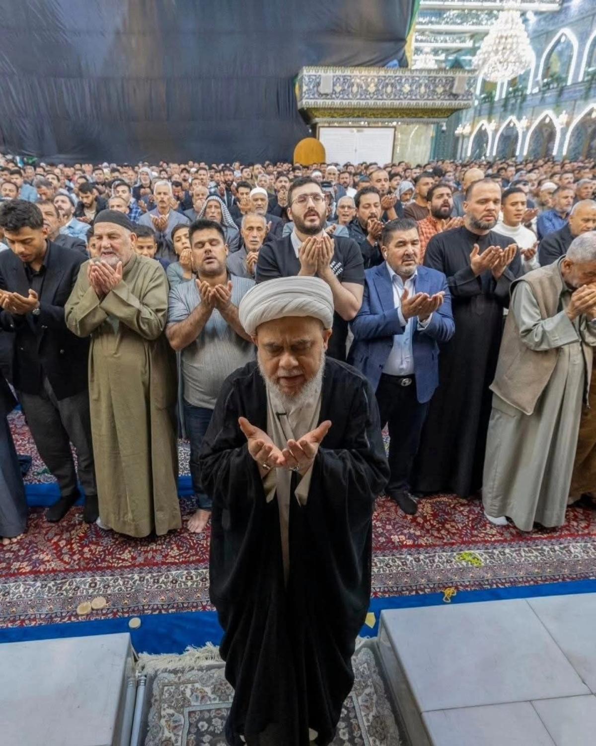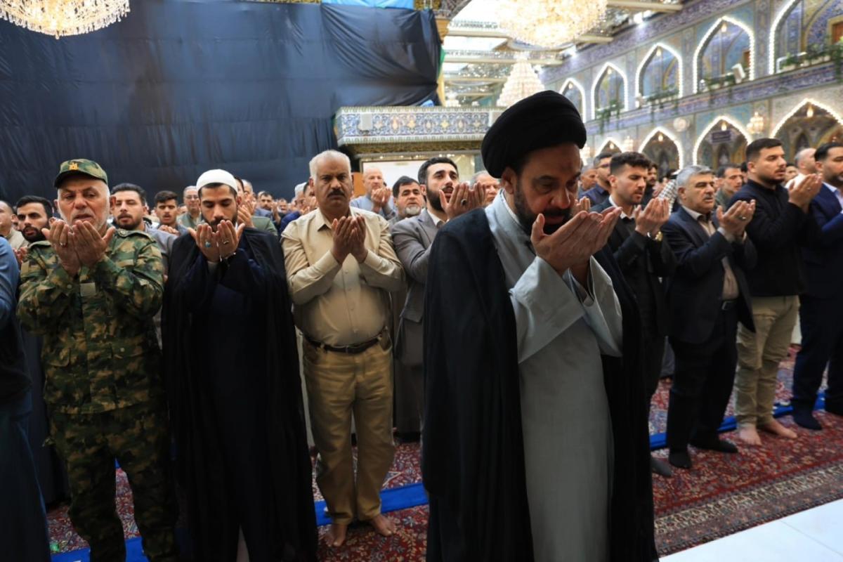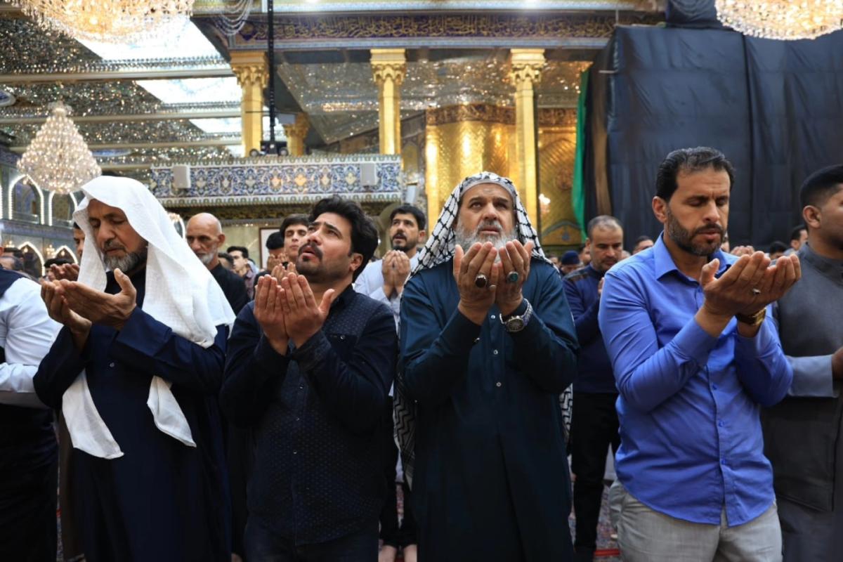 وأُقِيمت الصلاةُ الأولى بإمامة رئيس القسم الشيخ صلاح الكربلائي، تلتها اثنتا عشرة صلاة أخرى لتسهيل مشاركة الزائرين وتمكينهم من أداء صلاة عيد الفطر المبارك.