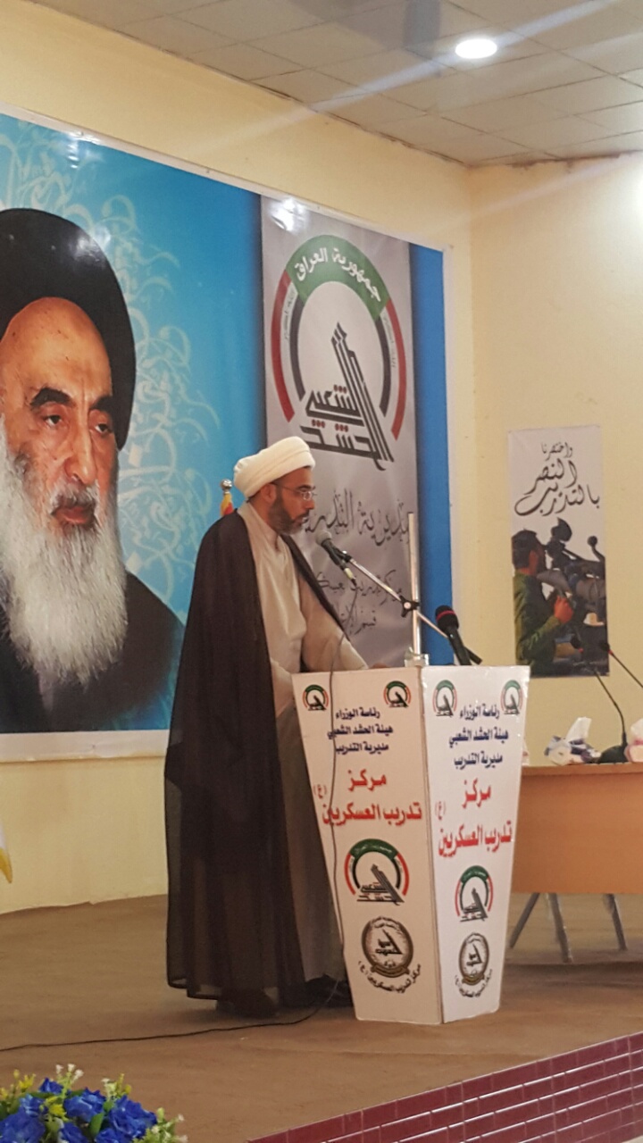 حيث اشترك وفدٌ مثّل اللّجنة ترأّسه مسؤولُها الشيخ حيدر العارضي في حفل تخريج دورة المُشاة الخامسة لمقاتلي الحشد الشعبي في معسكر تدريب العسكريَّين(عليهما السلام) في قضاء بلد، وقد كانت هناك كلمةٌ للشيخ العارضي حيّى من خلالها المقاتلين على هذه الروح القتاليّة العالية، حاثّاً إيّاهم في الوقت نفسه على الاستفادة من هذه الدورات التدريبيّة، لكون أنّ التدريب يعدّ العامل الأساسي لاكتساب المقاتلين المهارات الفرديّة في استخدام الأسلحة المختلفة ومِهْنَةِ الميدان، والارتقاء بِمُسْتَوى العمل الجماعي كَفَرِيقٍ واحِدٍ في التدريب التعبويّ في كافّة صفحات القتال من أدنى المستويات العسكريّة.