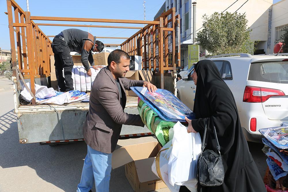 1.دعم القوّات الأمنيّة والحشد الشعبيّ مادّياً ومعنويّاً في ساحات القتال وجبهات النزال ضدّ العصابات الإرهابيّة بمبلغٍ كلّيّ هو (1,046,744,000) مليار وستة واربعون مليون وسبعمائة واربعه واربعون الف دينار عراقي، وهو يقع ضمن الدعم اللوجستيّ لهم، فشمل تزويد المقاتلين بملابس عسكريّة وأخرى داخلية وكفوف وملابس مطرية ومواد غذائيّة متنوّعة جافّة وطريّة ولحوم ومياه وثلج ، بالإضافة الى ادوية ومستلزمات طبية وعلاجية و أرصدة شحن هواتف وسكائر وعطور وفتح فرن لإنتاج الصمون وآخر لإنتاج الثلج وغيرها من المساعدات التي لا يتسع المجال لذكرها.