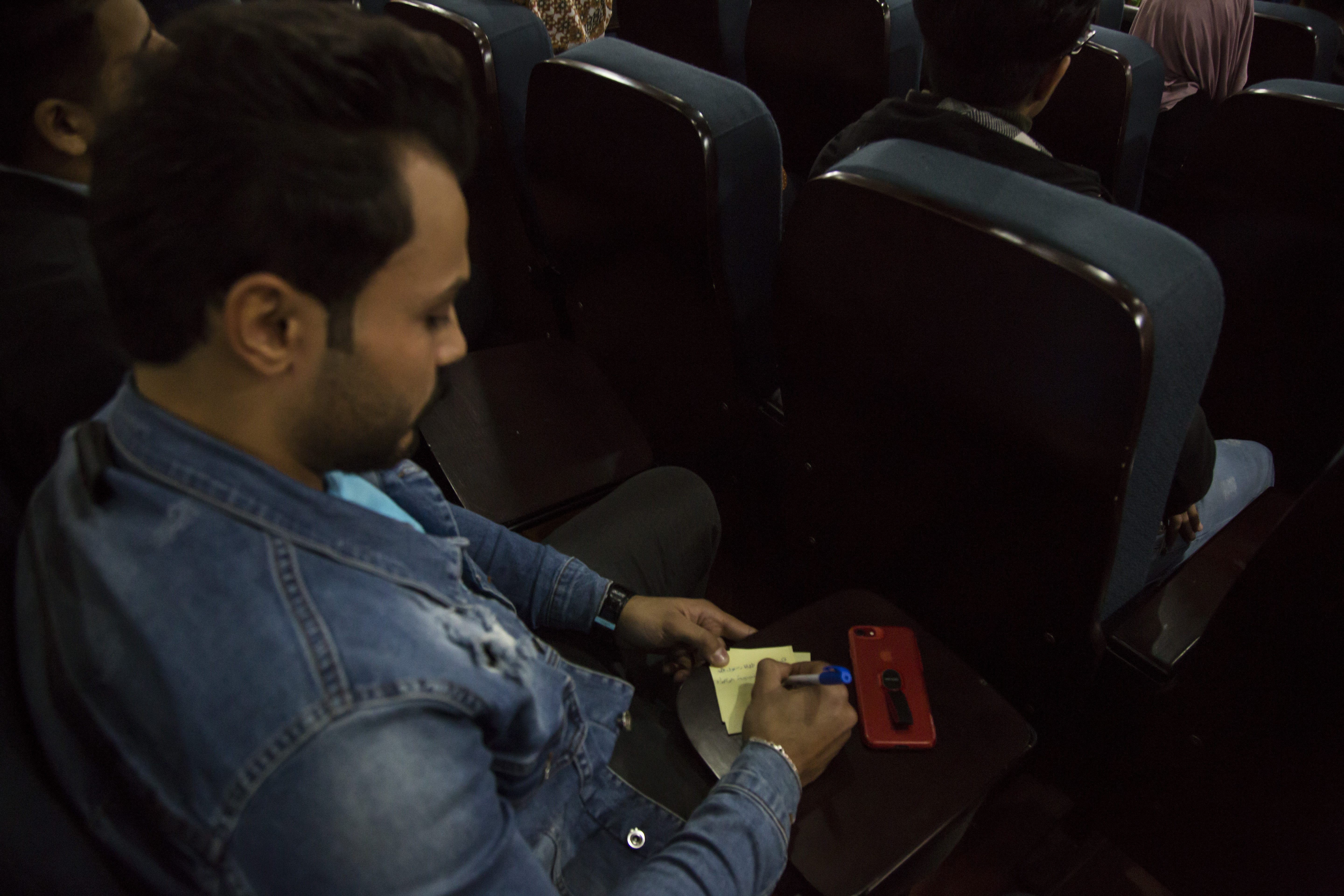 2- توزيع قصاصات على الطلبة الحاضرين كي يتسنّى لهم طرح ما يريدون من الأسئلة دون ذكر أسمائهم، ومن ثمّ جمعها وإعطاؤها الى الشيخ المحاضر.