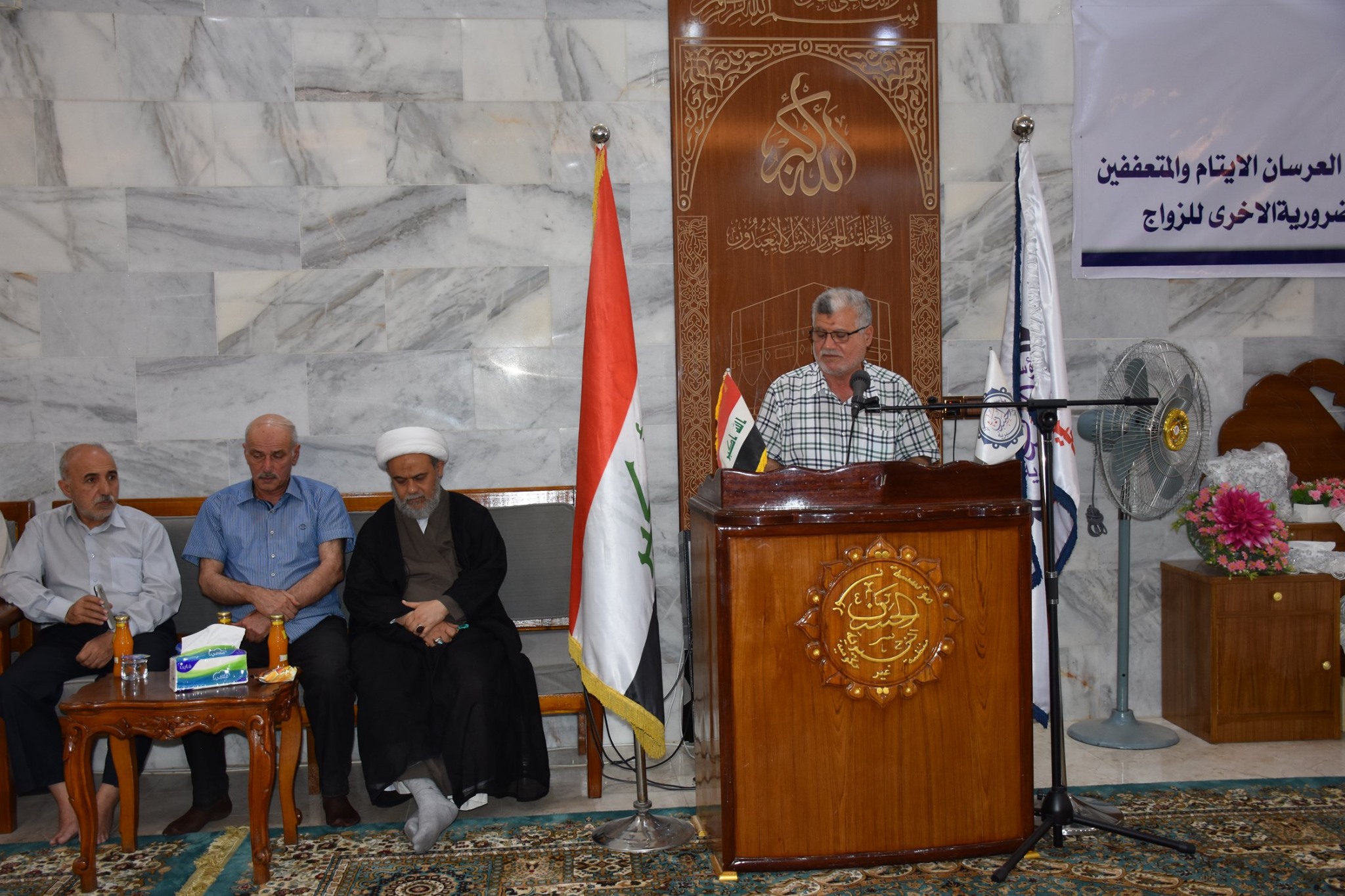 جاء ذلك خلال حضوره وإلقائه كلمةً في حفلٍ أقامته مؤسّسة نور الحسن(عليه السلام)، وهي من المؤسّسات التي تهتمّ برعاية وكفالة الأيتام في محافظة كربلاء المقدّسة، لتجهيزها مجموعةً من الشباب الأيتام والمتعفّفين بأثاث زواجٍ متكامل ضمن وجبتها الثانية.
