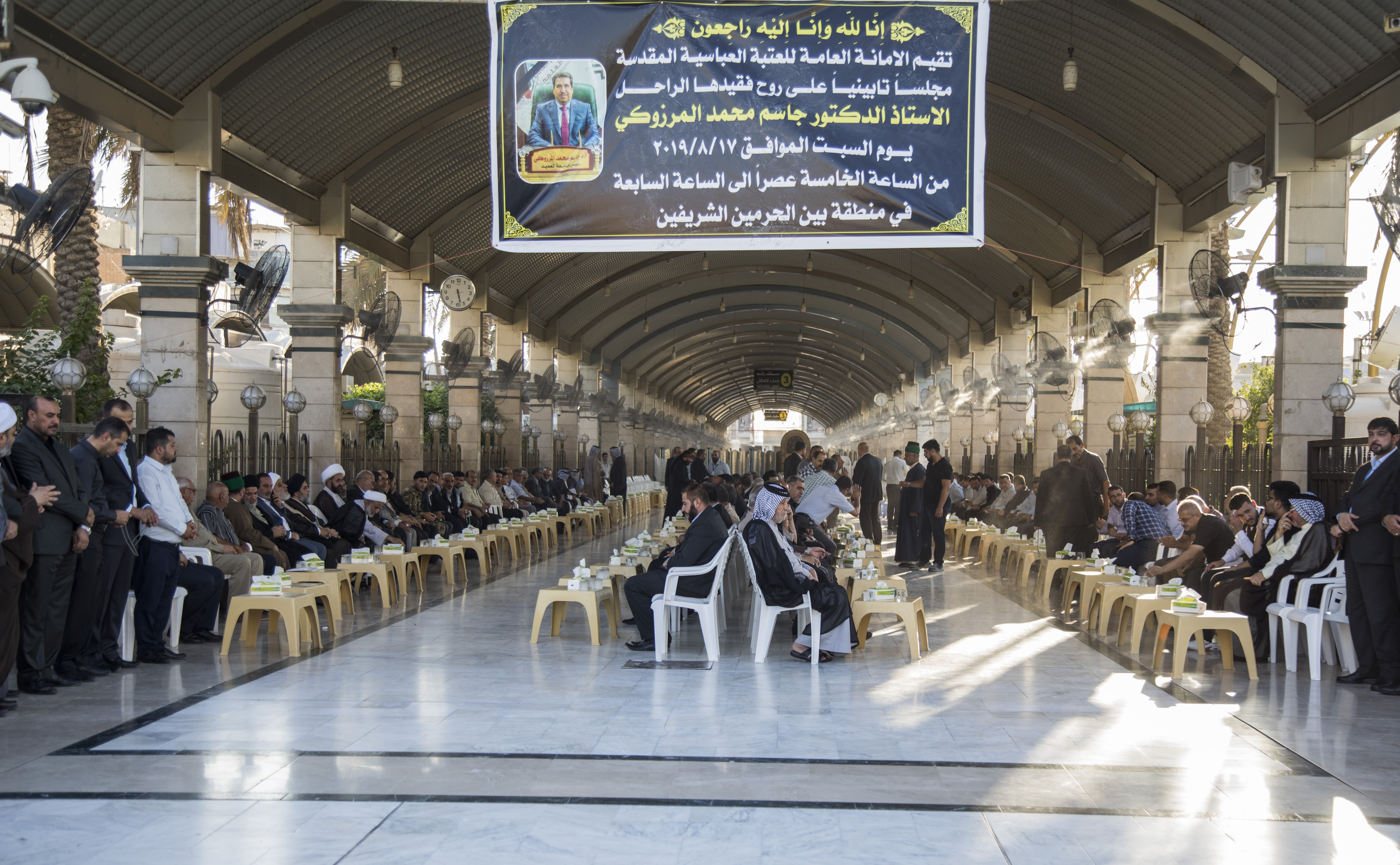 حضر وفد كبير مثل قسم الشؤون الدينية مجلس التأبين الذي أقامته العتبة العباسية المقدسة على روح رئيس جامعة العميد التابعة لقسم التربية والتعليم العالي فيها المغفور له الاستاذ الدكتور جاسم محمد المرزوكَي الذي توفاه الله تعالى الأسبوع الماضي إثرَ تعرضه لجلطةٍ دماغية مفاجئة أدخلته في غيبوبة دامت عدّة أشهر.