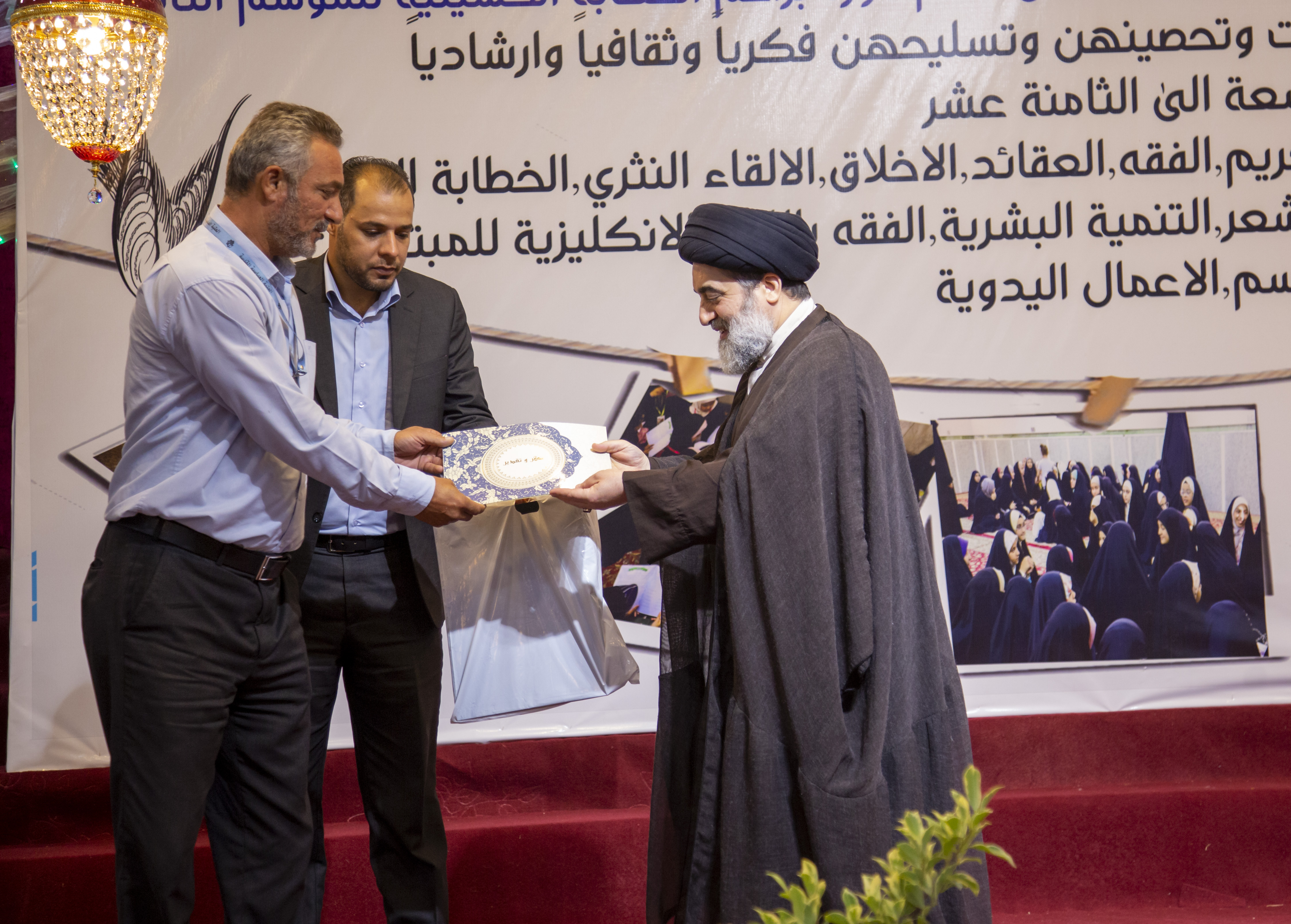 كذلك شارك القزويني بتقديم الهدايا والشهادات التقديرية للمتيزات من هذه الدورة والمساهمين في انجاحها .