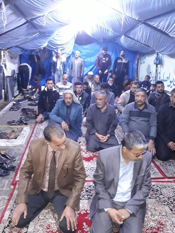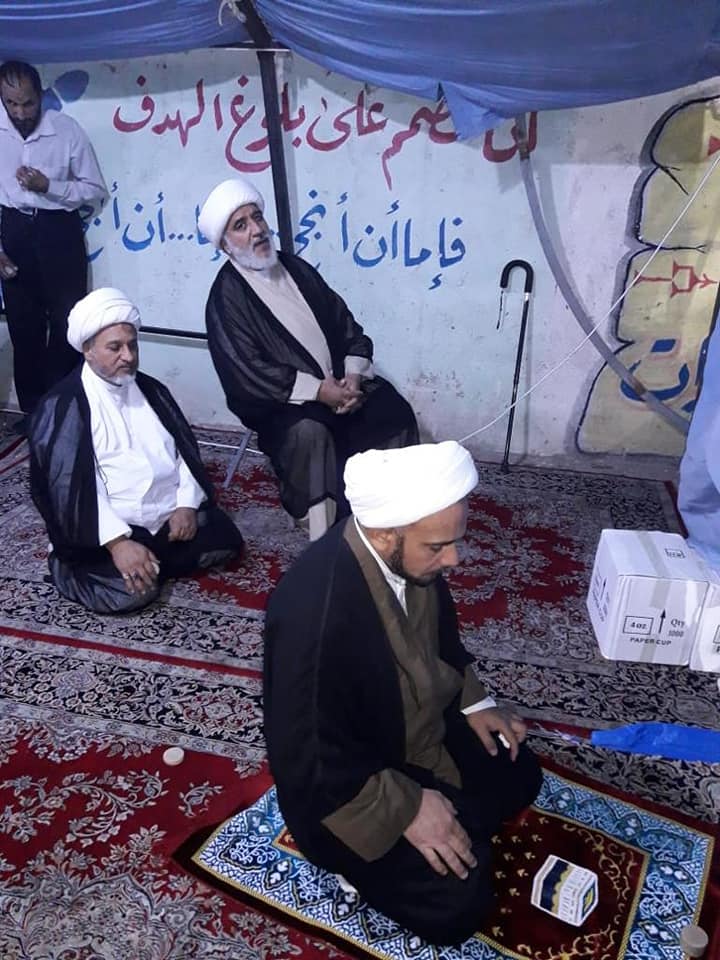 معاونُ رئيس قسم الشؤون الدينيّة الشيخ عادل الوكيل بيّن قائلاً: "إنّ تواجدنا بين إخوتنا وأبنائنا في ساحة التظاهر هو لنعلن تضامننا ووقوفنا مع المتظاهرين المطالبين بحقوقهم المشروعة، ولنُسهم في إعطاء جزءٍ من الزخم لهم، فكان تواجدنا في المركز الذي افتتحته العتبةُ العبّاسية المقدّسة لدعم المتظاهرين، كذلك قمنا بأداء صلاة الجماعة هناك بالإضافة الى الإجابة عن أسئلة واستفسارات المتظاهرين التي تخصّ حراكهم الشعبيّ أو غيره".