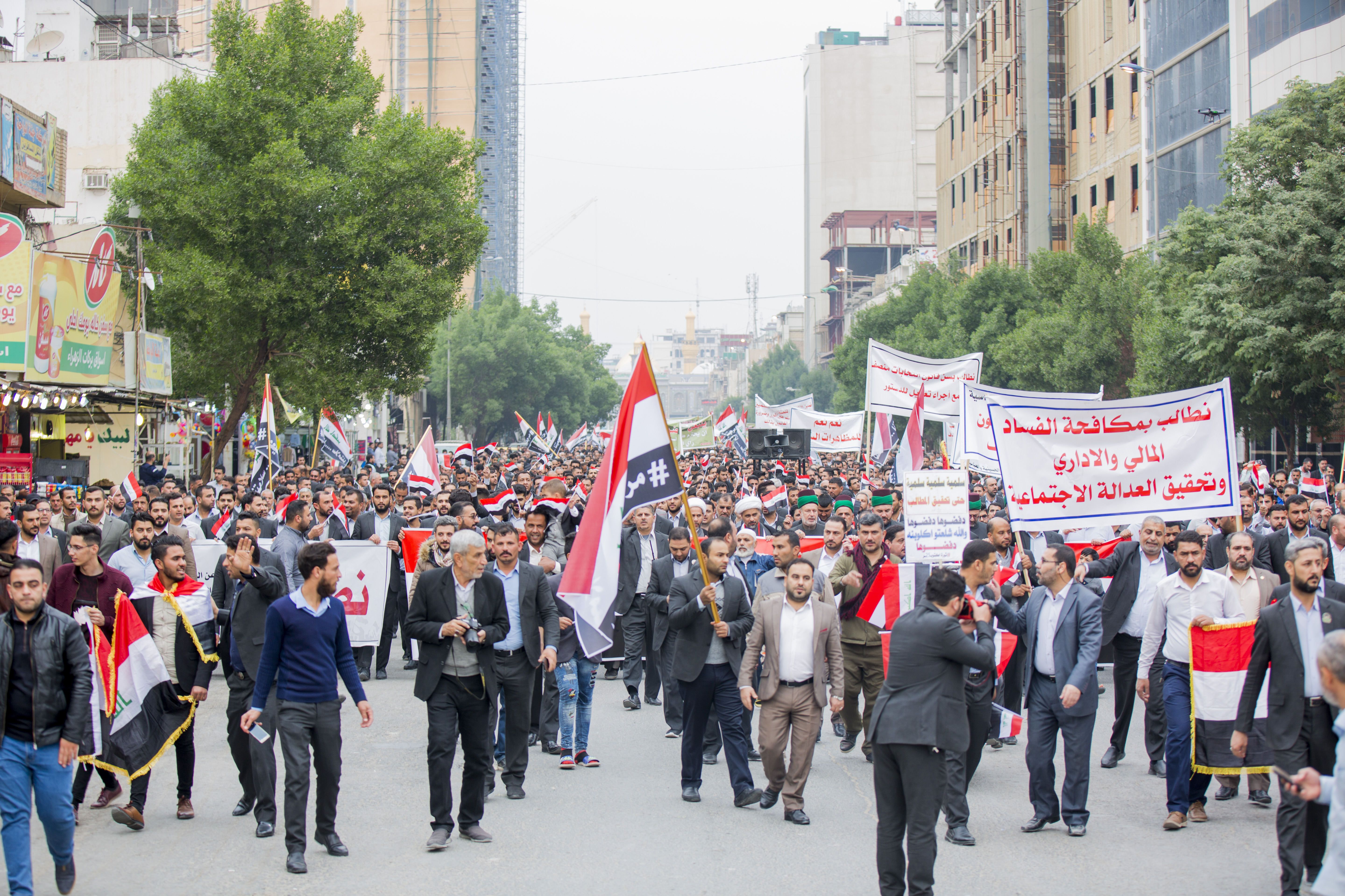 هذا وقد تقدم المشتركين رئيس الشيخ صلاح الكربلائي الذي بين من جانبه قائلا " ان خروجنا هذا اليوم هو تأكيد على تضامننا وتأييدنا لإخواننا وأبنائنا المتظاهرين المطالبين بحقوقهم المشروعة التي كفلها الدستورُ العراقيّ وأيّدتها المرجعيّةُ الدينيّةُ العُليا وهذا هو اقل شين قدمة لهم في ضل هذه الظروف ".