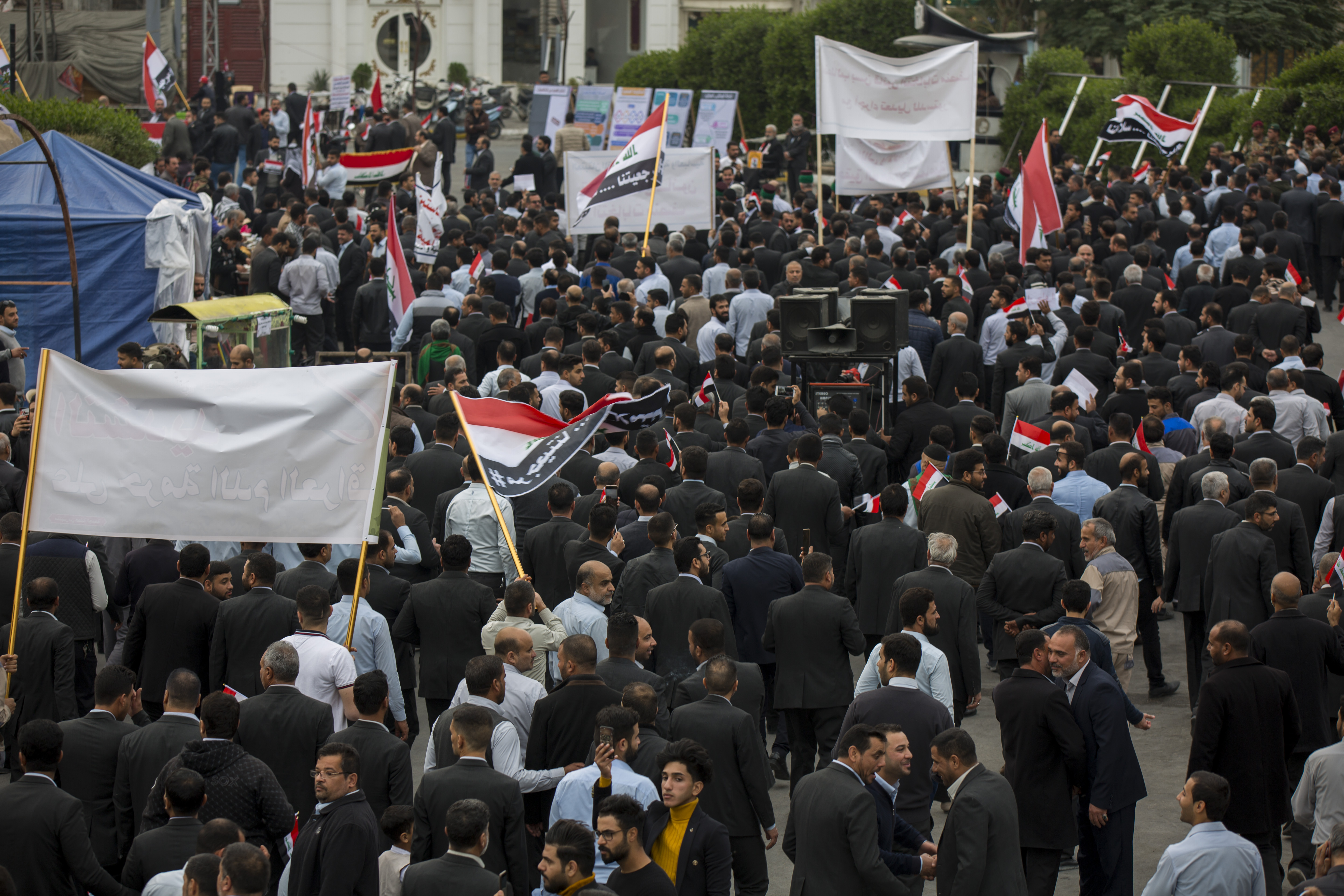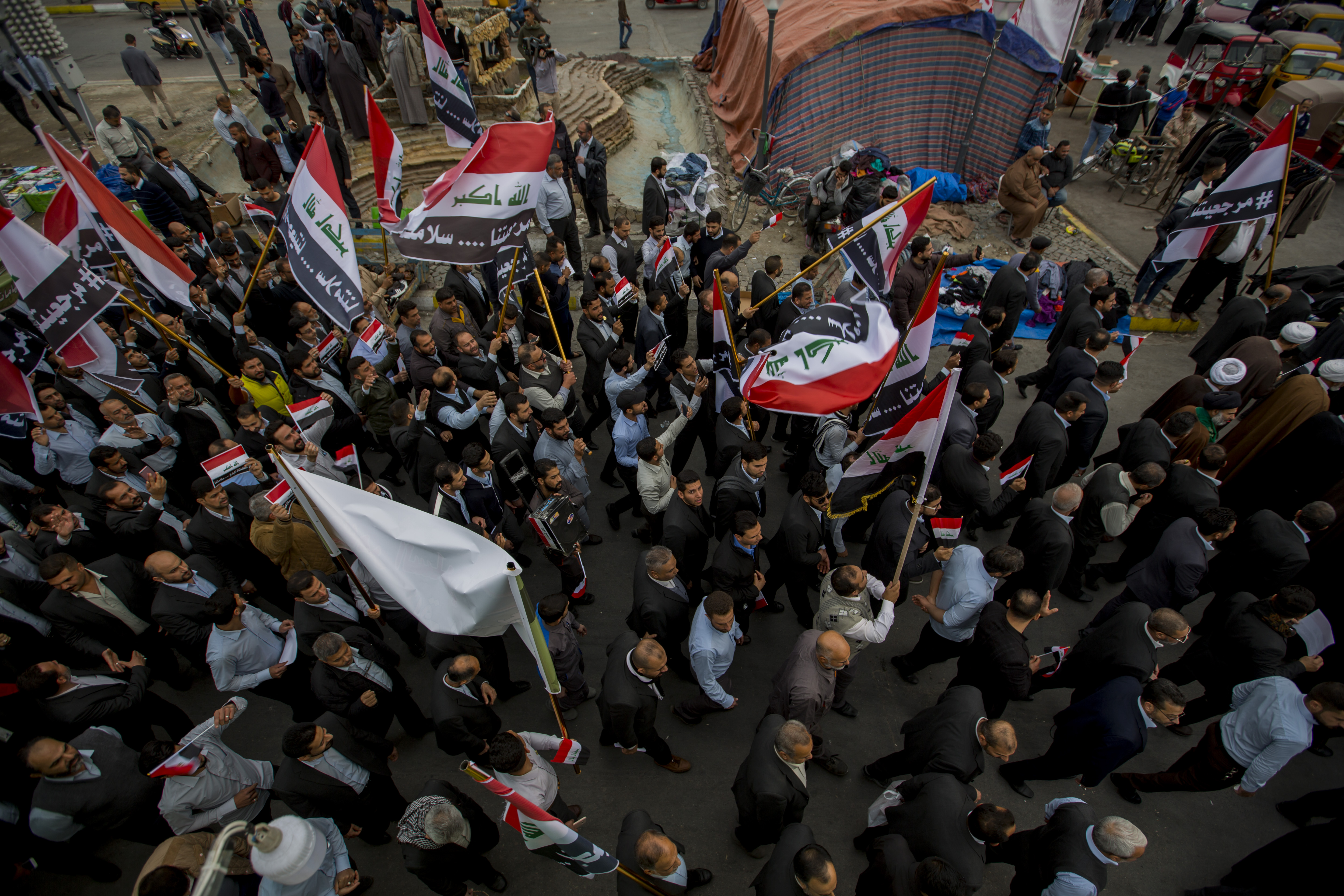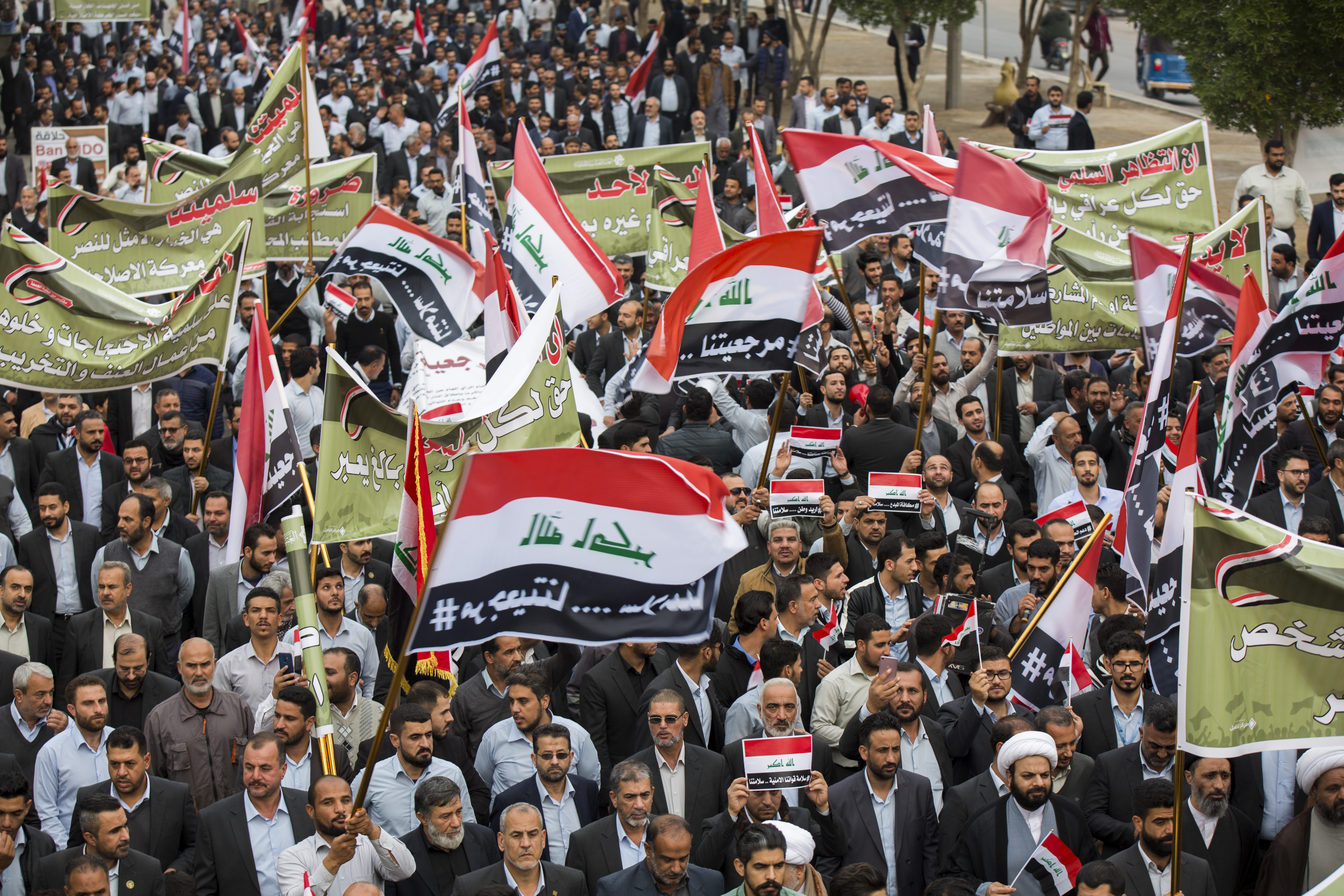للمرّة الثالثة خلال هذا الشهر اسوة بباقي منتسبو العتبتين المقدستين اشترك قسم الشؤون الدينية في العتبة العباسية المقدسة من سادة ومشايخ وادريين بالمسيرة التضامنية مع التظاهرات السلميّة التي تشهدها عددٌ من المحافظات العراقيّة، المطالبة بحياةٍ كريمة ومستقبلٍ لائق بأبناء الشعب العراقيّ، ومنها محافظة كربلاء المقدسة وذلك عصر يوم السبت (27 ربيع الأوّل 1441هـ) الموافق لـ(25 تشرين الثاني 2019م) .