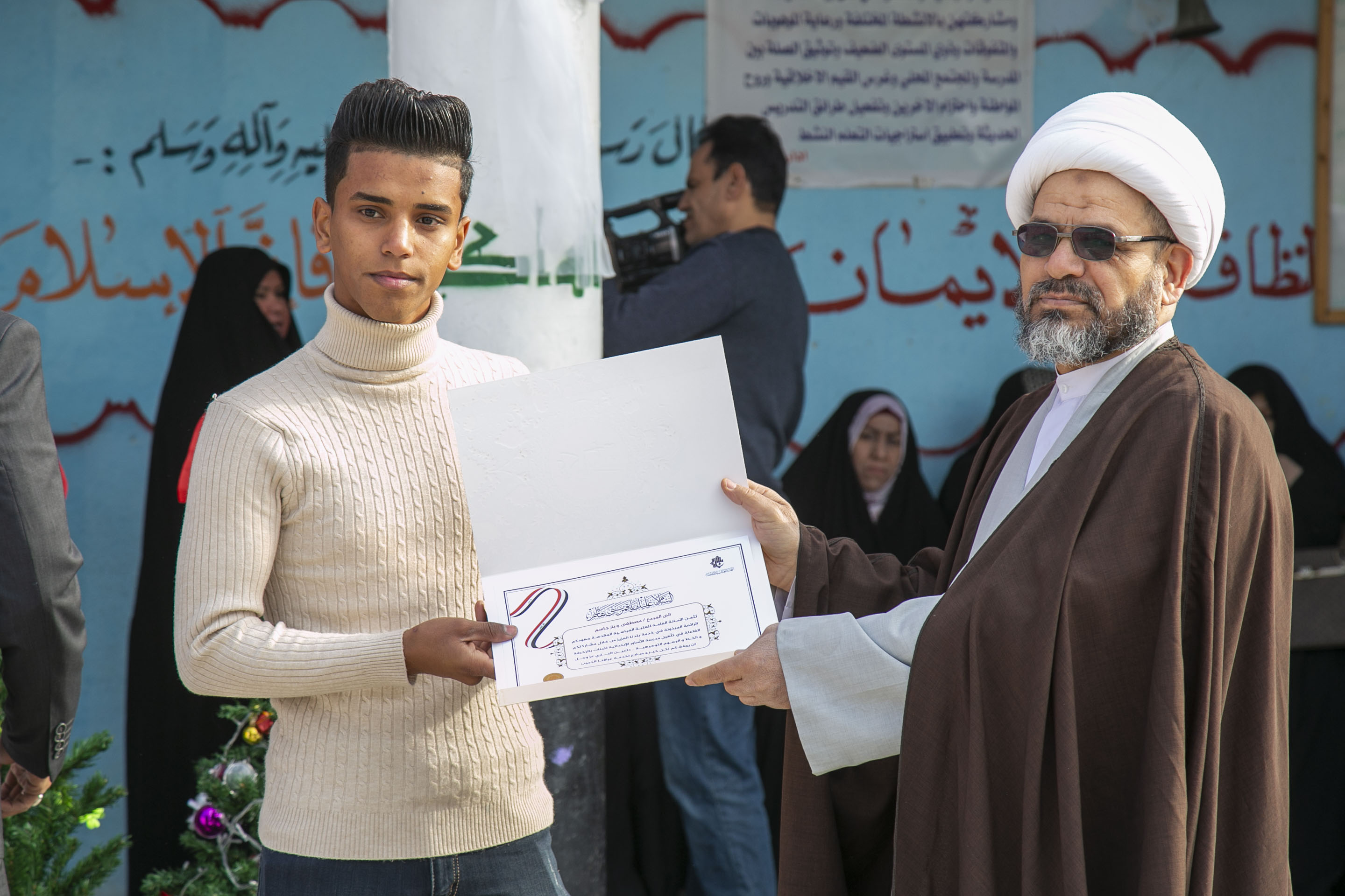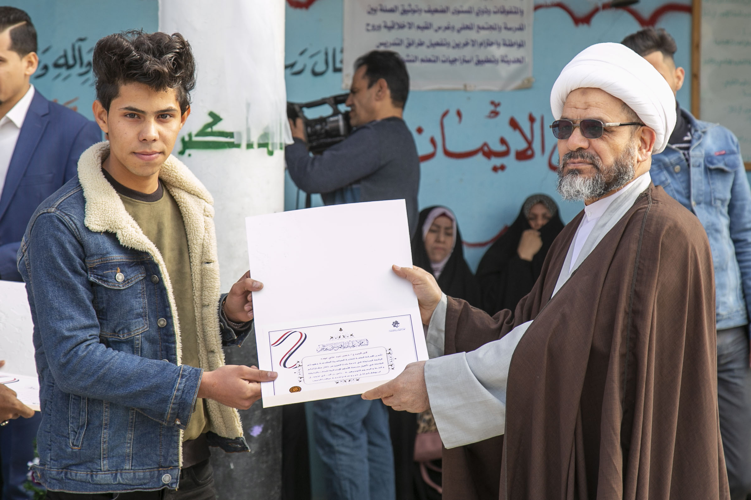 كما قام الشيخ السعيدي بتوزيع الهدايا والشهادات التقديرية للمساهمين والمشاركين في انجاز هذا العمل .