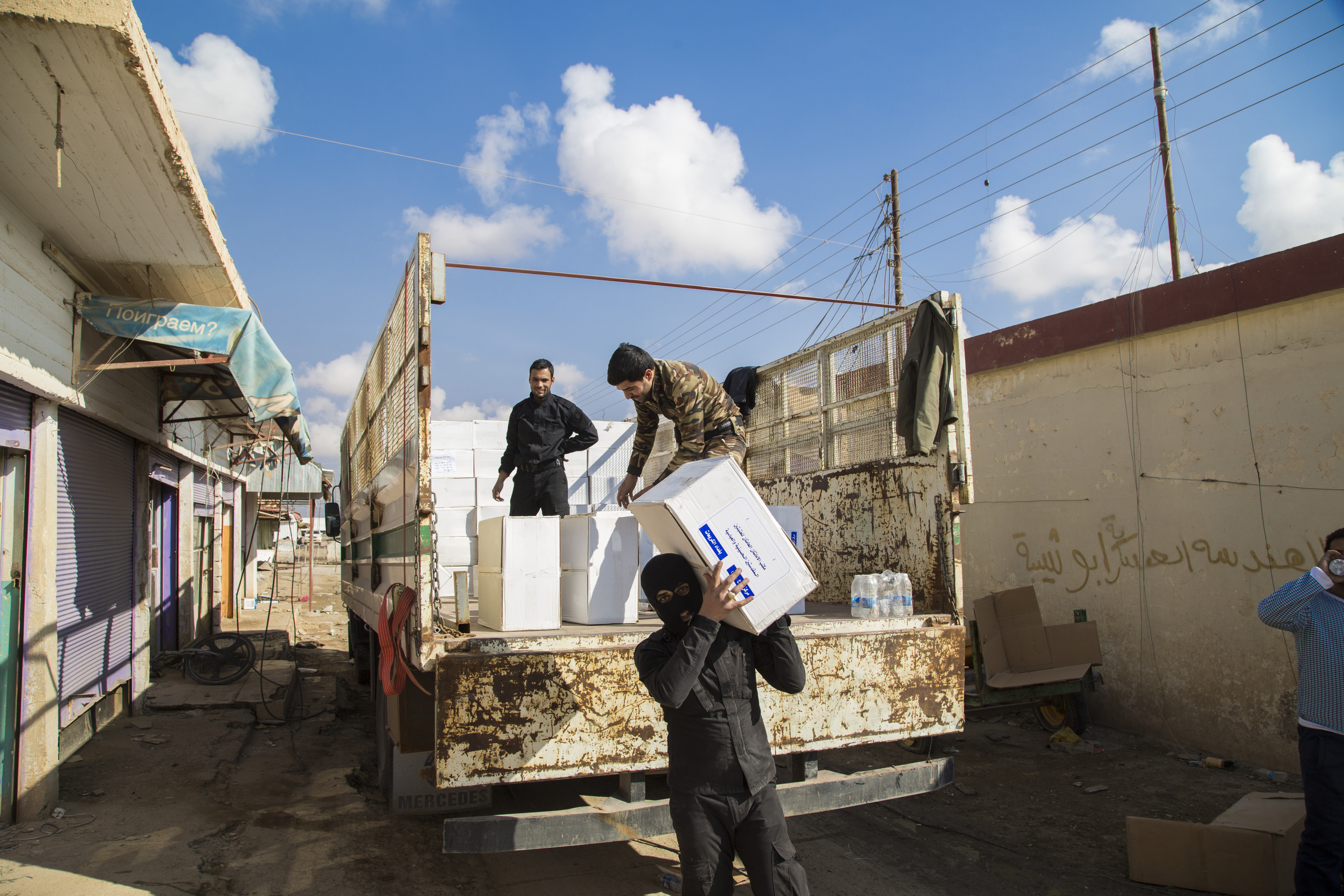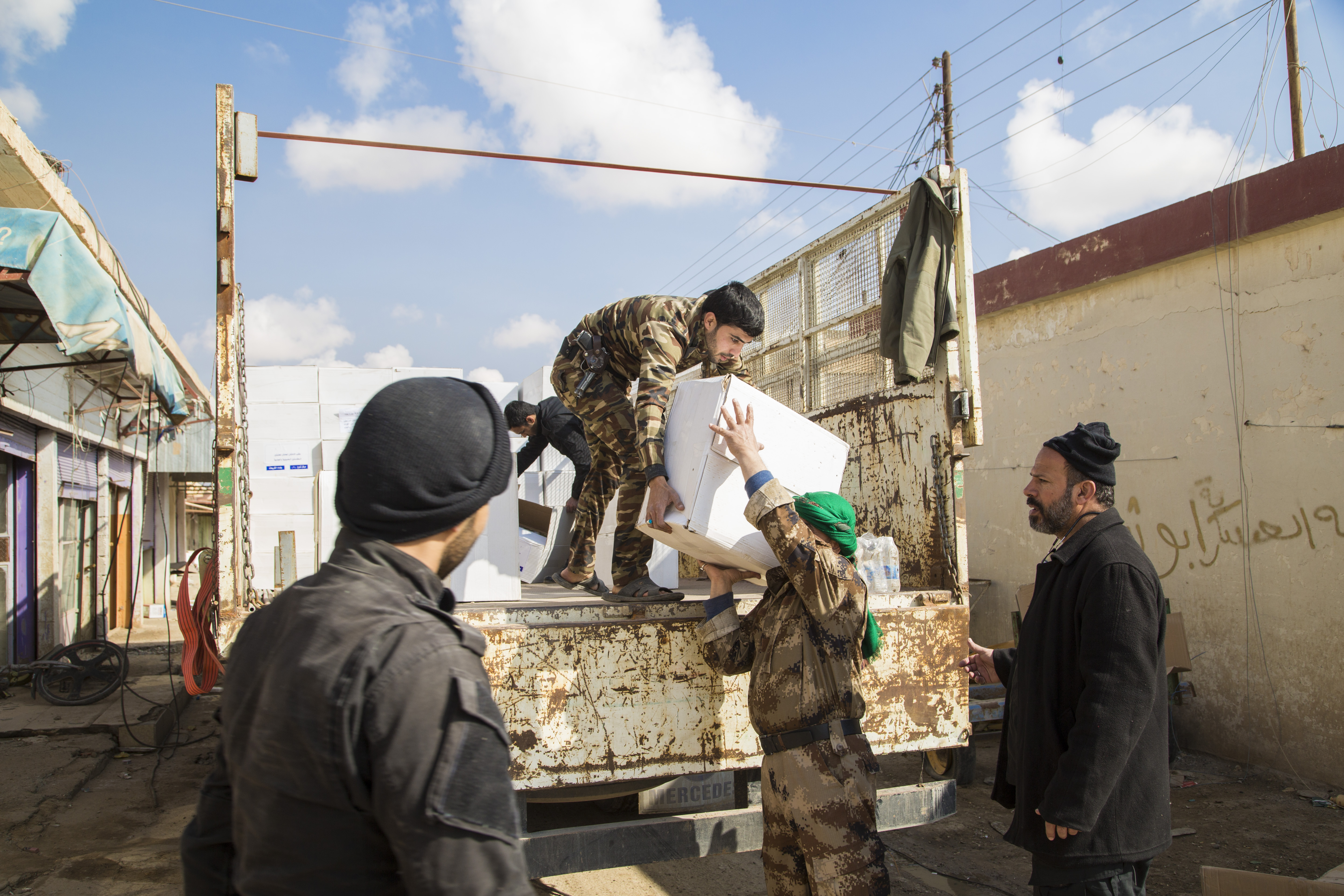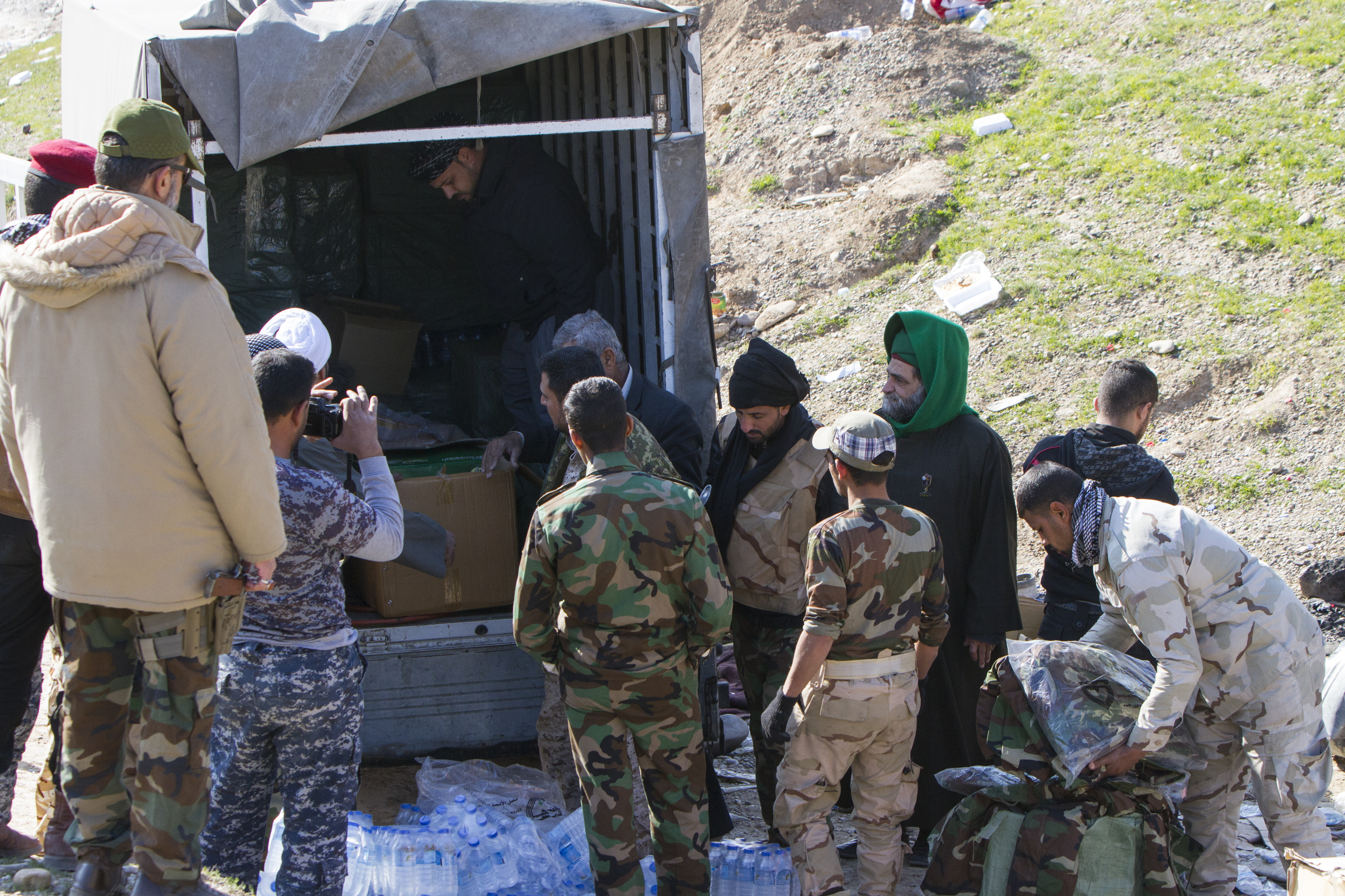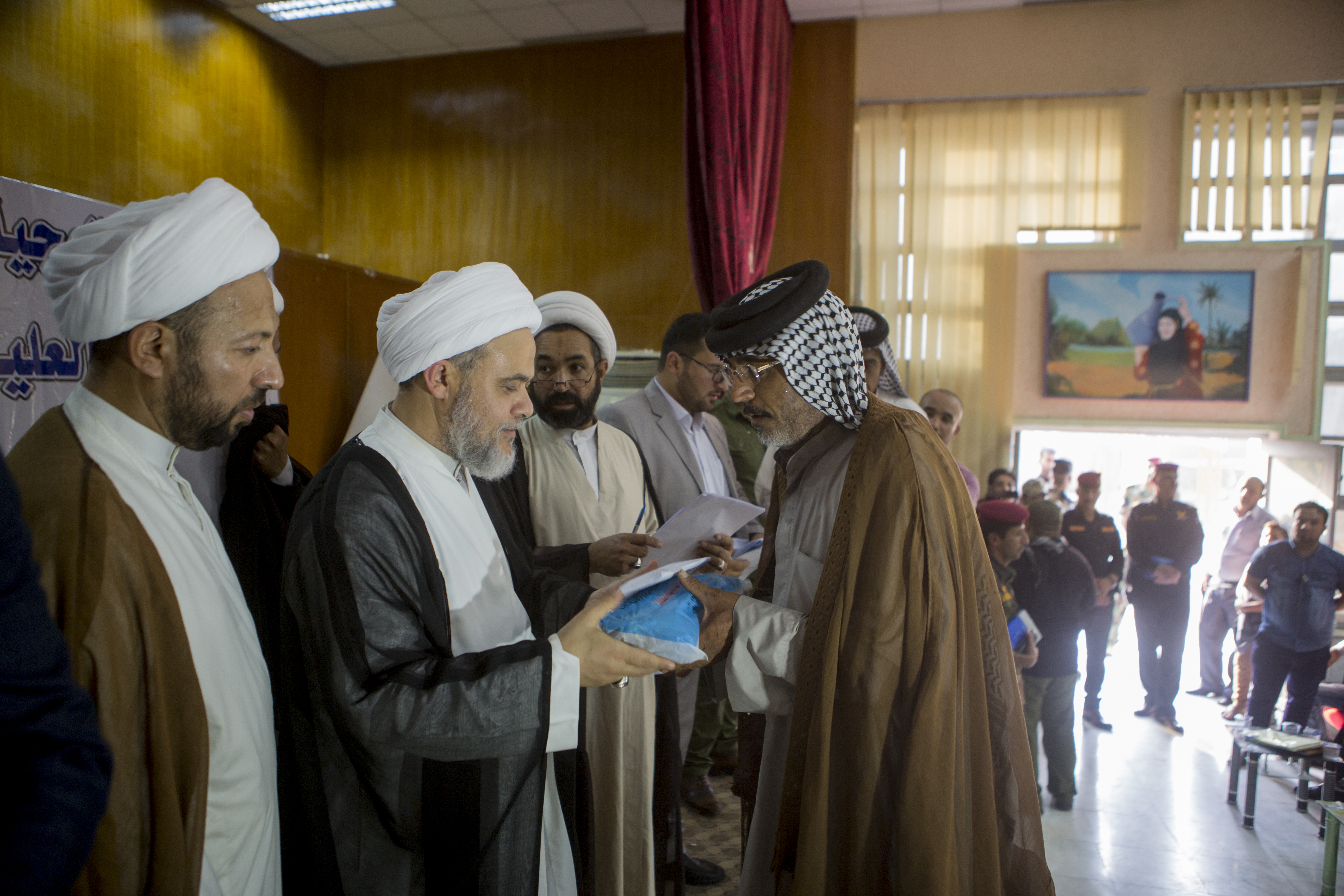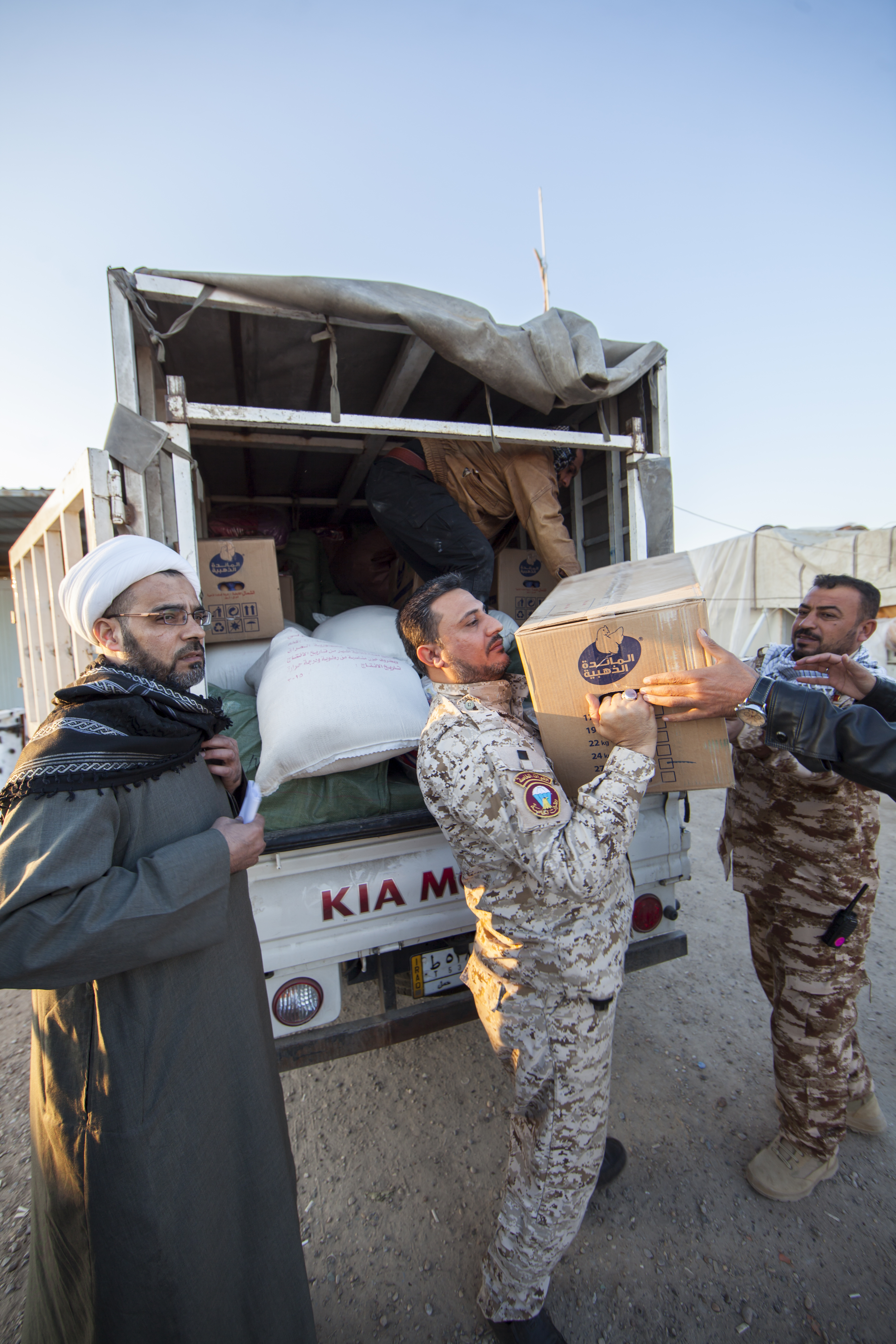 - دعم القوّات الأمنيّة والحشد الشعبيّ مادّياً ومعنويّاً في ساحات القتال، فشمل تزويد المقاتلين بمبالغ عينيّة فضلاً عن نواظير ليليّة وملابس عسكريّة ومواد غذائيّة متنوّعة جافّة وطريّة ولحوم ومياه، بالإضافة الى مواد تكميليّة غيرها.