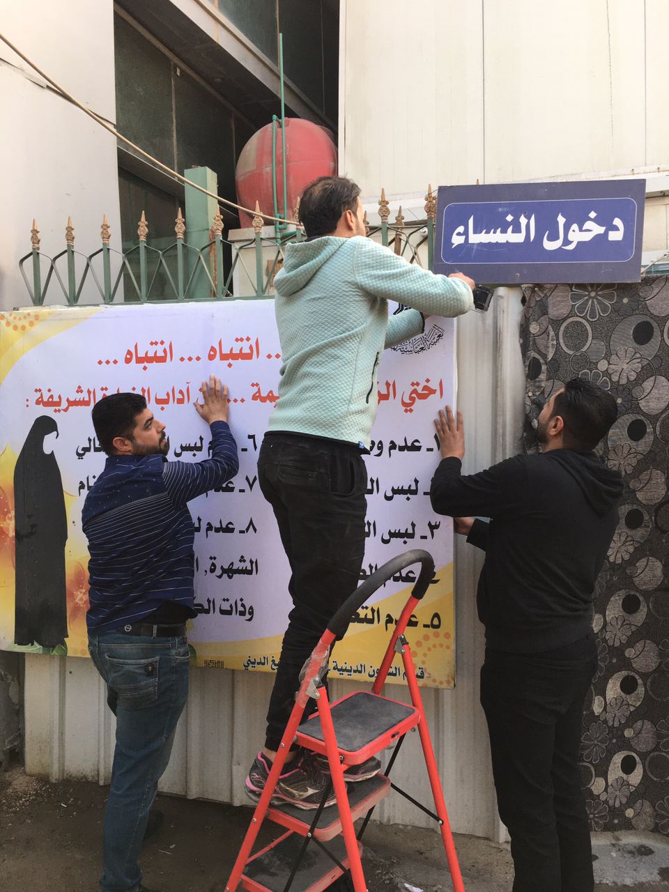 شرعت شعبةُ التبليغ الدينيّ التابعة لقسم الشؤون الدينيّة في العتبة العبّاسية المقدّسة، بحملةٍ لنشر لوحاتٍ إرشاديّة على شكل (فلكسات) وبأحجامٍ مختلفة، على المداخل الرئيسيّة المؤدّية إلى مرقد الإمام الحسين وأخيه أبي الفضل العبّاس(عليهما السلام)، وذلك لأجل المساهمة في توعية الزائرين وتثقيفهم بطريقةٍ فنّية ومبسّطة.