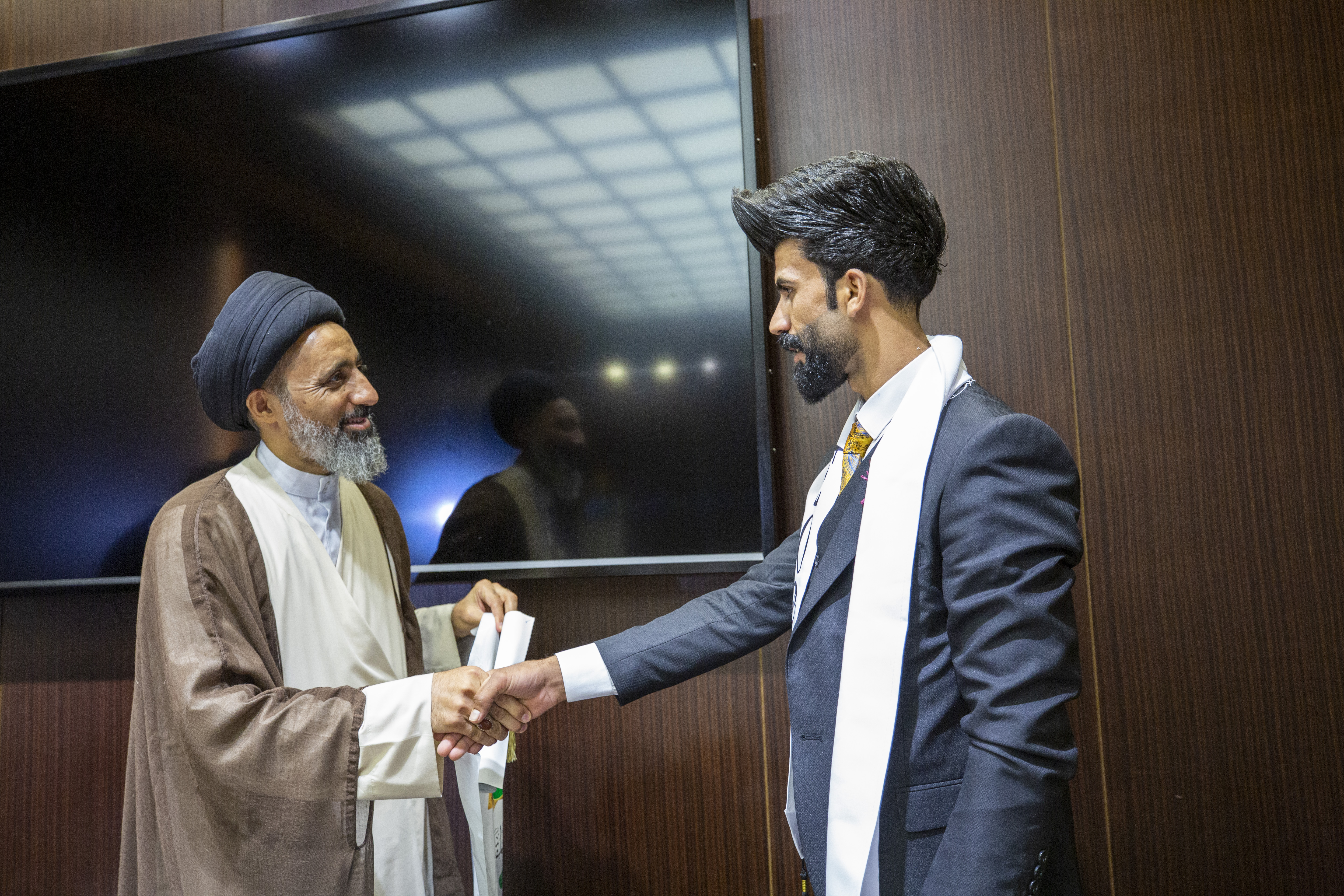 خلال استقبال مجموعةٍ من خرّيجي كلّية العلوم/ قسم الفيزياء في جامعة المثنّى، من المحتفين بتخرّجهم عند مرقد أبي الفضل العبّاس(عليه السلام)، كانت هناك كلمةٌ إرشاديّة ألقاها عليهم السيّد محمد عبد الله الموسوي مسؤولُ شعبة التبليغ الدينيّ.