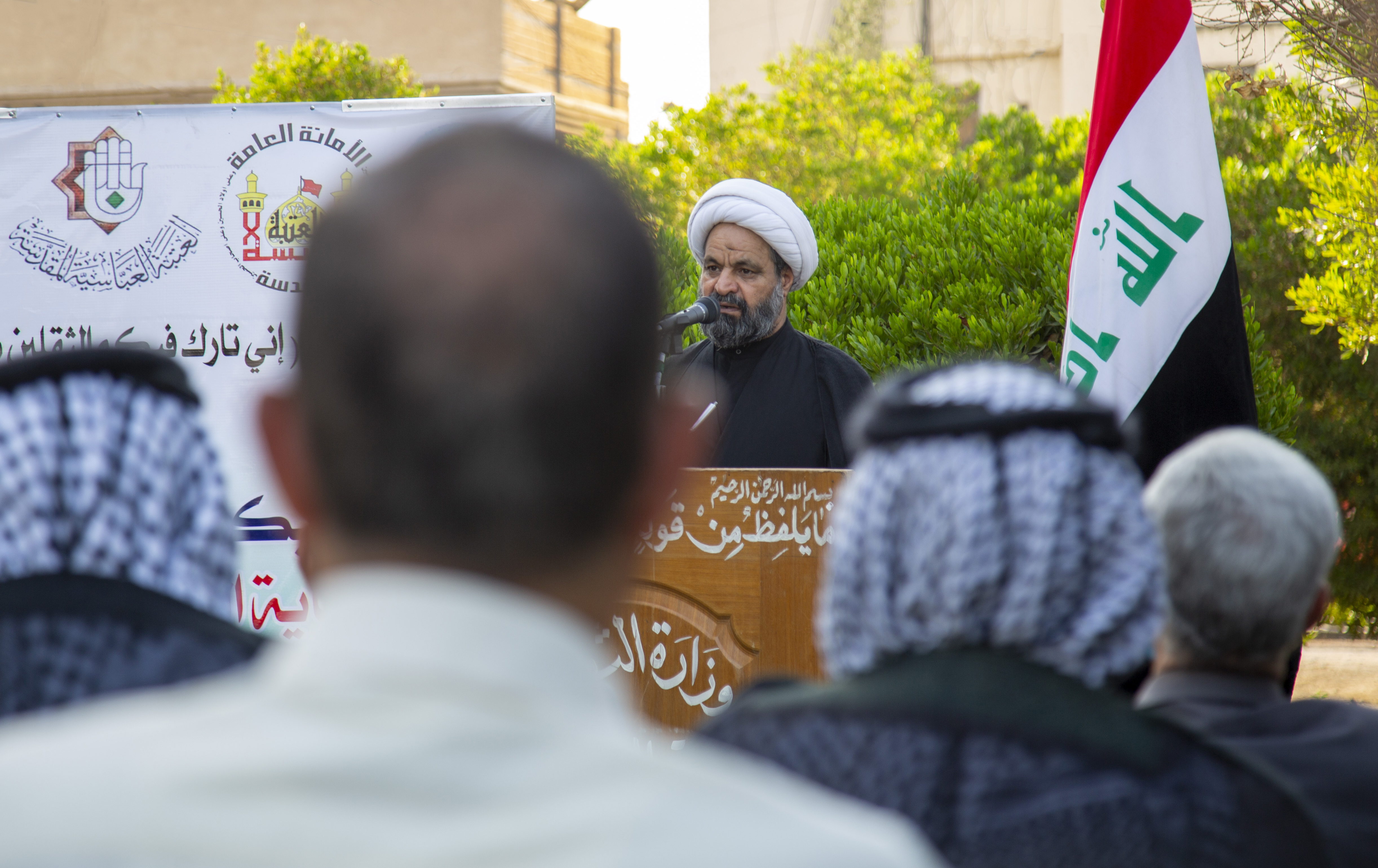 وقد نابَ الشيخ باسم الكربلائي من قسم الشؤون الدينيّة عن العتبة العبّاسية المقدّسة بإلقاء كلمتها، التي ممّا جاء فيها: "نحن نستذكر ونُحيي في هذه المهرجانات والفعّاليات ما جرى على الإمام الحسين وأهل بيته الأطهار(عليهم السلام) في طفّ كربلاء، فإنّ نهضة الإمام الحسين(عليه السلام) كانت تصحيحيّة، وثورةً إنسانيّة عالميّة بيّنت معاني الثبات والحقّ والحريّة التي أقرّها الإسلامُ العظيم، الذي جاء ليساوي بين الناس أجمعين، فما كان خروجه (عليه السلام) إلّا للقضاء على الانحراف الذي كاد أن يصيب الإسلام وأمّة جدّه رسول الله(صلّى الله عليه وآله) من قِبَلِ بني أُمَيّة".