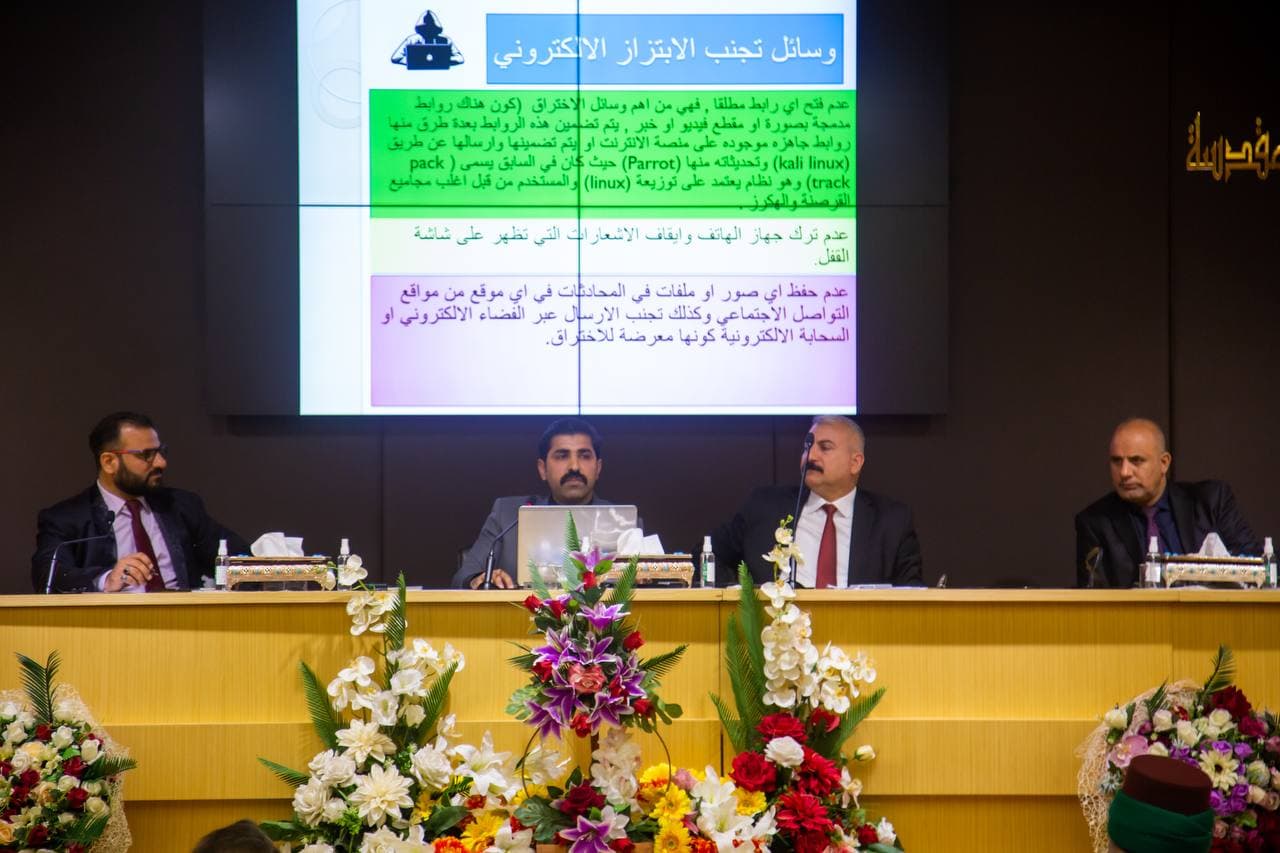 وتضمّنت الندوة عدة موضوعات أهمها: أنواع الجرائم الإلكترونية، وسائل الحماية من الاختراق والابتزاز الإلكتروني، الذباب الإلكتروني، الإشاعات قدّمها عدد من الأكاديميين والمختصين في الأمن الرقمي، إضافة الى ضباط في جهاز الأمن الوطني.