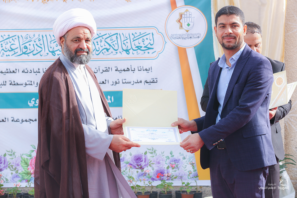 وأضاف " ان حضورنا هو لدعم مثل هذه المشاريع القرآنية التي تهدف الى تنمية مهارات المتعلمين في قراءة القران الكريم وحفظ آياته، حيث تسهم إلى غرس ثقافة القرآن الكريم في نفوس المتعلمين وجعله دستورا في حياتهم؛ لمواجهة تحديات الحياة الراهنة التي أحيطت بأسباب الغزو الثقافي المخيف الذي يتقاطع وفطرة الانسان السليمة.