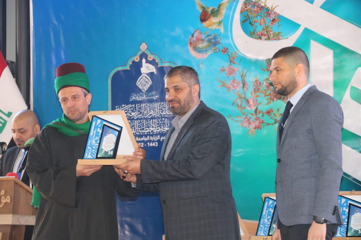 وطابت الأنفاس والألحان بغرّيد النجف الأشرف المنشد أحمد الفتلاوي، وتُوِّجت بتقديم العرفان للداعمين لهذا العمل من قِبل الأمانة العامّة للمؤسّسة والمُشرِف العام لفرقة العبّاس الأستاذ ميثم الزيدي، بعدها أُجرِيت القرعةُ لعشرةٍ من المتسابقين الأوائل المتمثّلة بمنح الهديّة وهي راية المولى أبي الفضل العبّاس المتبرّكة بقبّته (زادها الله شرفاً)، ثمّ قدّمت العتبةُ الكاظميّةُ المقدّسة هدايا لعشرة متسابقين إضافيّين، واختُتِمت بتوزيع الهدايا للفائزين بالمراتب المتقدّمة.