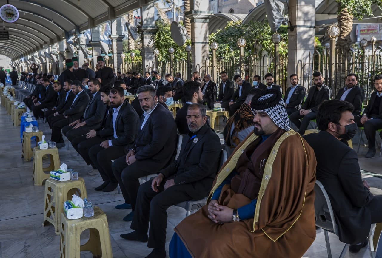 وعُقد المجلسُ عصر هذا اليوم الأحد (4 رجب 1443هـ) الموافق لـ(6 شباط 2022م)،في ساحة ما بين الحرمَيْن الشريفَيْن بحضور جمعٍ من طلبة العلوم الدينيّة والشخصيّات المجتمعيّة، فضلاً عن مسؤولي العتبتَيْن المقدّستَيْن الحسينيّة والعبّاسية وخَدَمتهما.