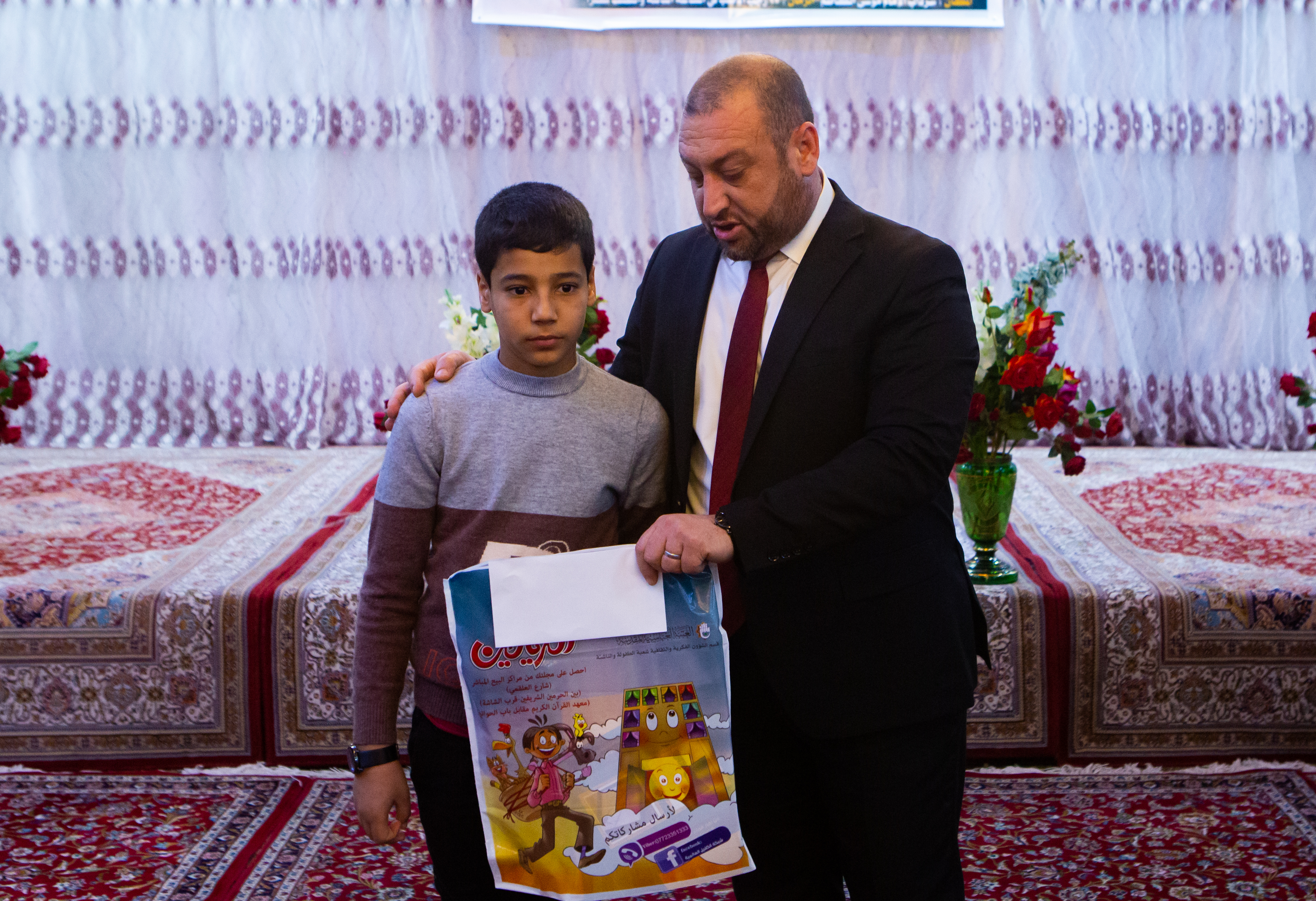 ليتمّ بعد ذلك توزيعُ الهدايا التكريميّة للأيتام وذويهم، وسط عبارات الدعاء لهم بالتوفيق في حياتهم العامّة،
