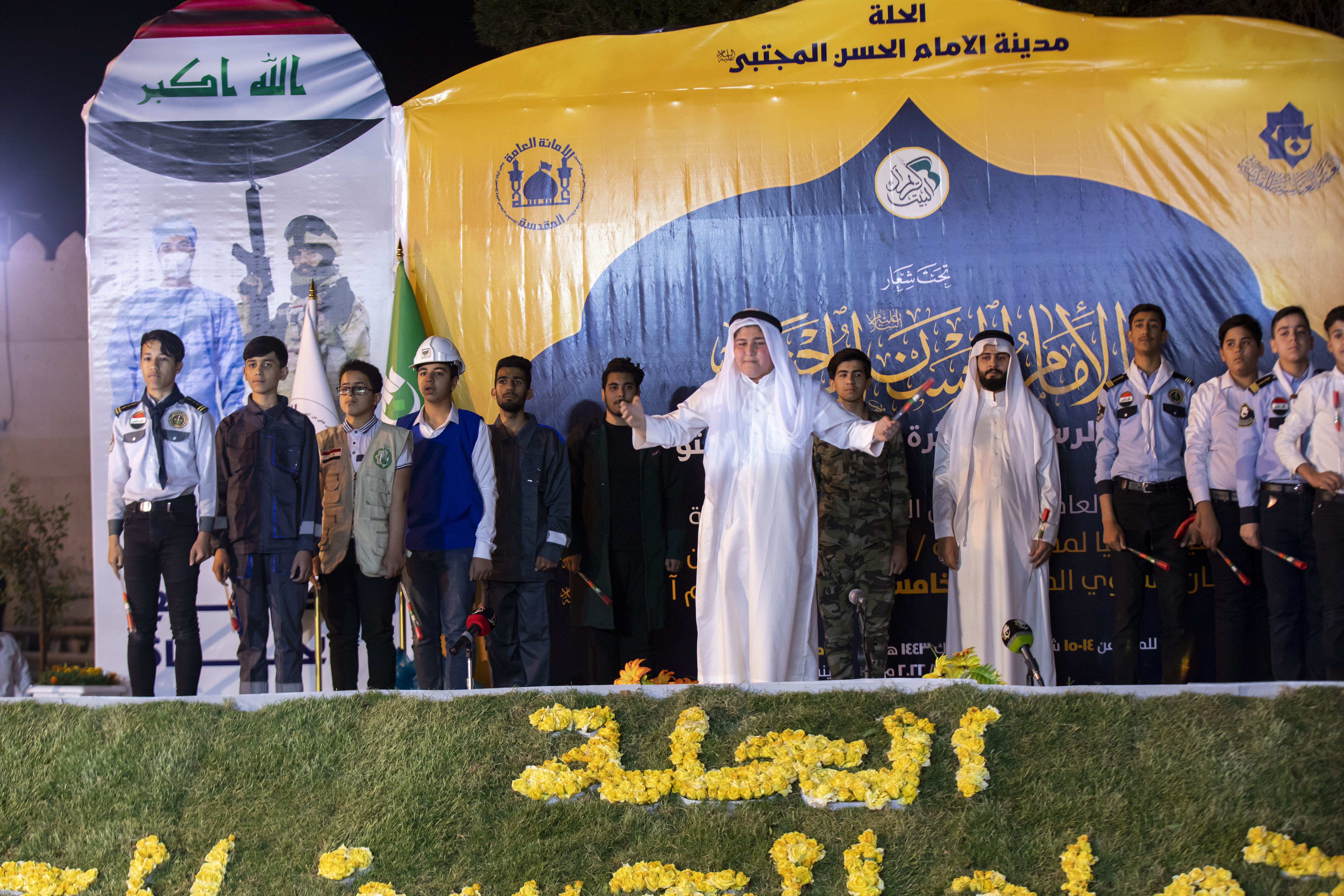 وأُقيم حفلُ افتتاح المهرجان الذي عُقِد تحت شعار: (الإمامُ الحسنُ المُجتبى -عليه السّلام- سبطُ الرسول وقرّةُ عينِ الوصيِّ والبتول)، على حدائق مقام ردّ الشمس في مدينة الحلّة، وشهد حضوراً لوفدَيْن من العتبتَيْن المقدّستَيْن وديوان الوقف الشيعيّ في محافظة بابل، وعددٍ غفير من الشخصيّات الدينيّة والثقافيّة والأكاديميّة والإعلاميّة.