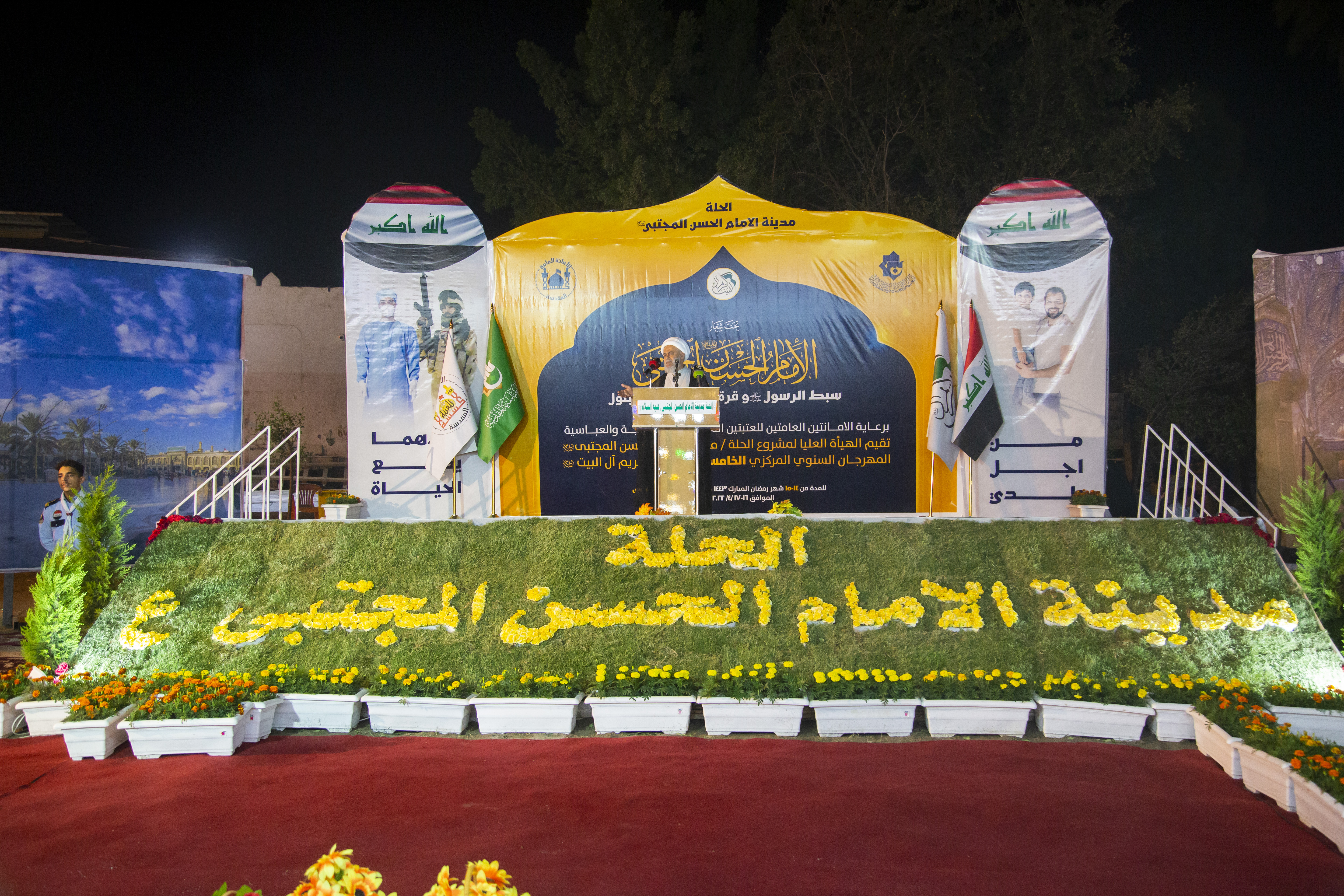 انطلقتْ بعد صلاتَيْ المغرب والعشاء مساء هذا اليوم السبت (14رمضان 1443هـ) الموافق لـ(16نيسان 2022م)، فعّالياتُ النسخة الخامسة عشرة من المهرجان الثقافيّ السنويّ لولادة كريم أهل البيت الإمام الحسن المجتبى(عليه السلام)، الذي يُقيمه أهالي مدينة الحلّة برعاية الأمانتَيْن العامّتَيْن للعتبتَيْن المقدّستَيْن الحسينيّة والعبّاسية، إحياءً للذكرى العطرة لولادة السبط الأكبر الإمام الحسن(عليه السلام).