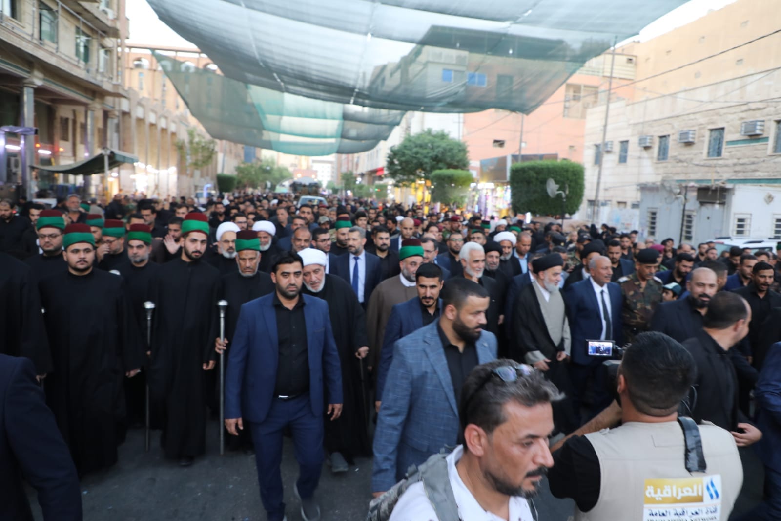 وبحضور سماحة المتولّي الشرعيّ للعتبة العبّاسية المقدّسة السيّد أحمد الصافي (دام عزّه)، والسيّد رئيس ديوان الوقف الشيعيّ الدكتور حيدر الشمّري ومحافظ كربلاء السيّد نصيف جاسم الخطابي، والأمينين العامّين للعتبتين المقدّستين الحسينيّة والعبّاسية، وعددٍ من أعضاء مجلسَيْ إدارتهما ورؤساء أقسامِهِما، وسطَ مشاركةِ جموعٍ غفيرة من الزائرين وأهالي كربلاء الكرام.