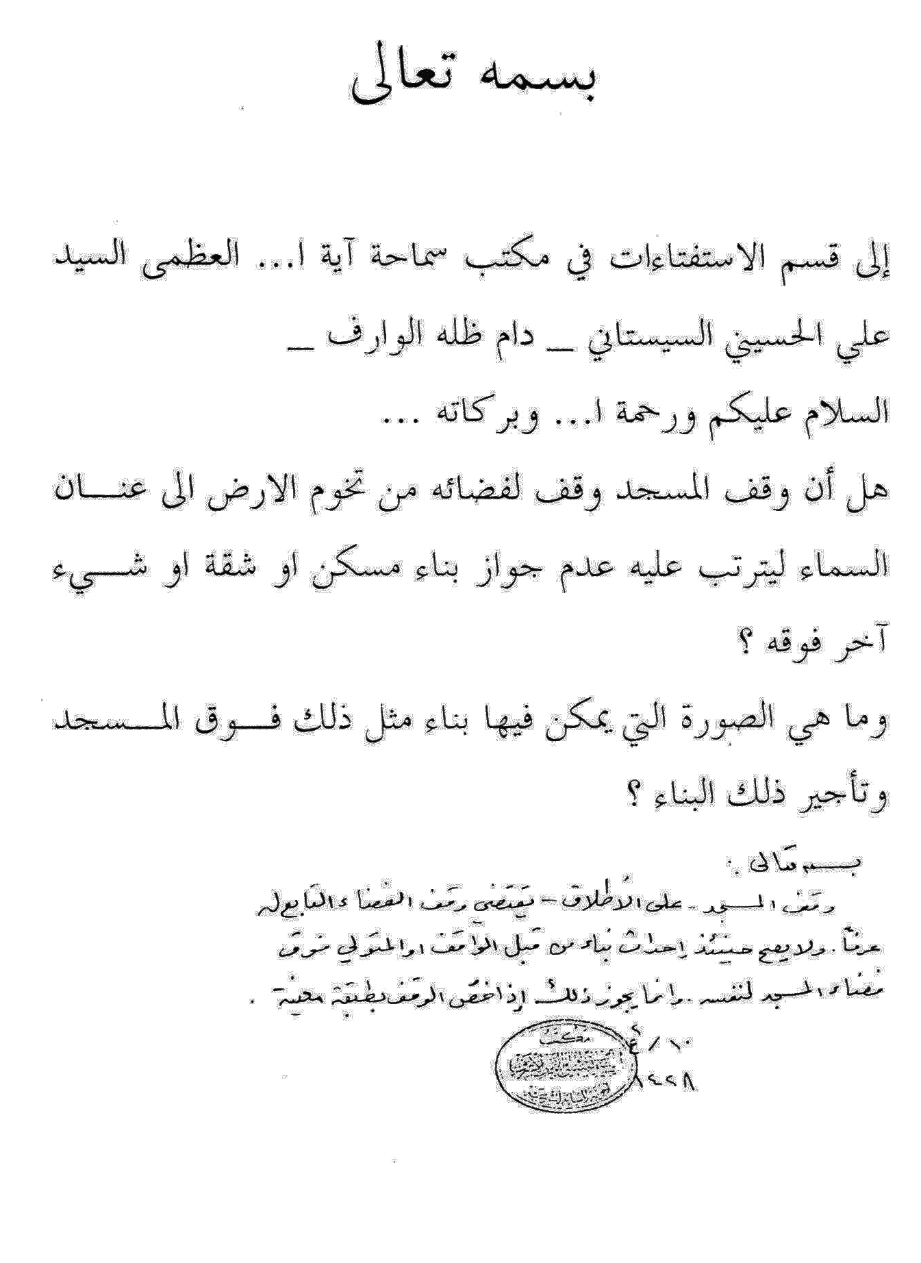 استفتاء يخص وقف المسجد