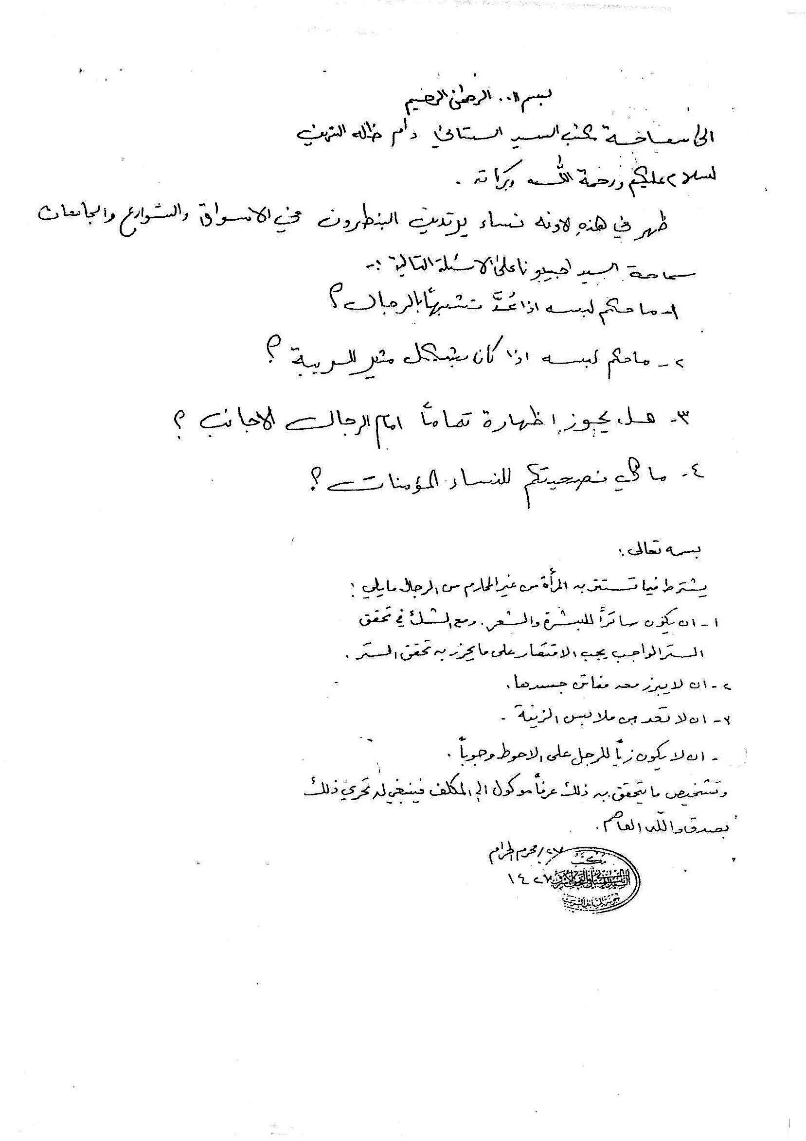 استفتاء يخص لبس النساء