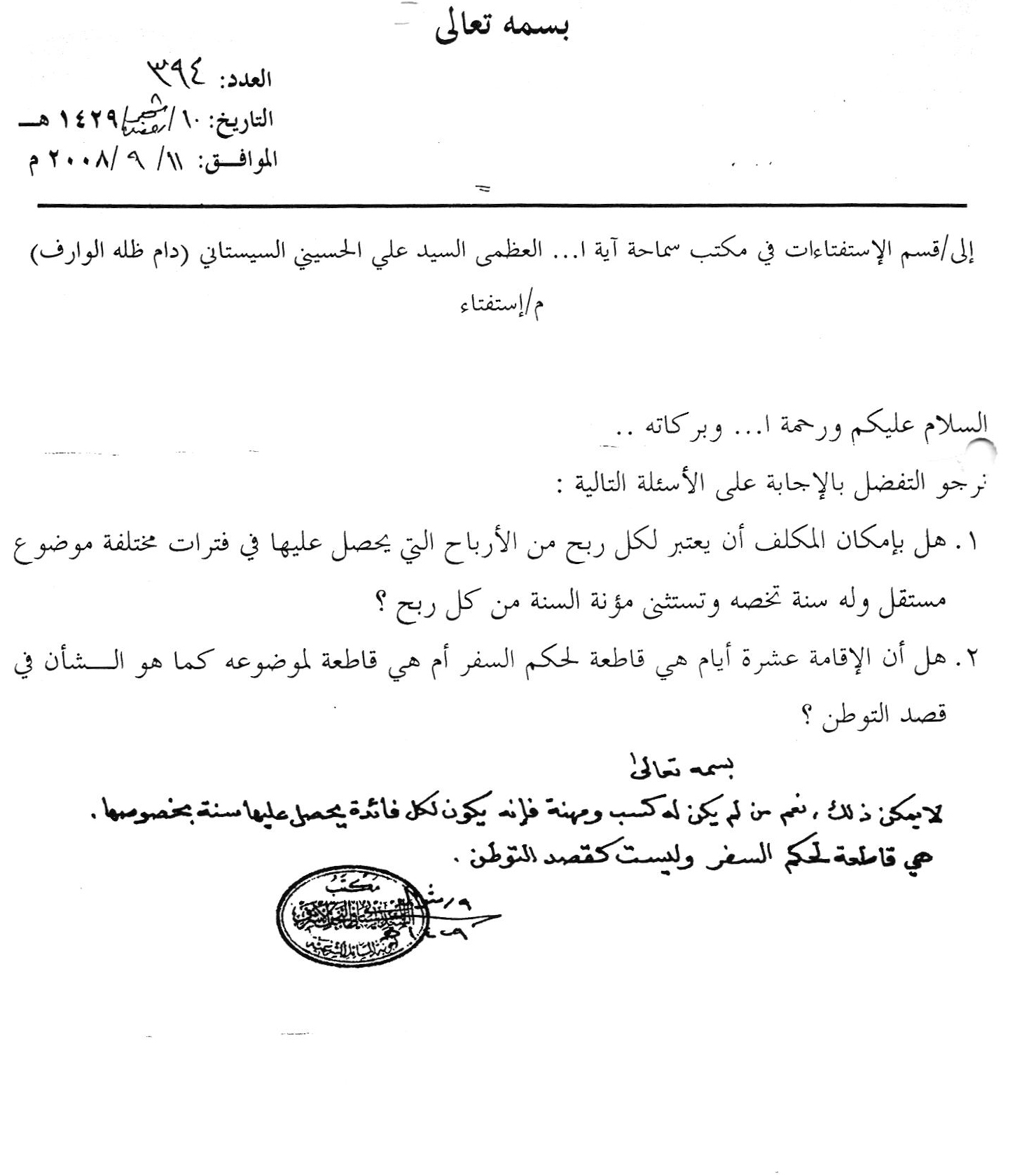 استفتاء يخص الخمس و مدة الأقامة الشرعية
