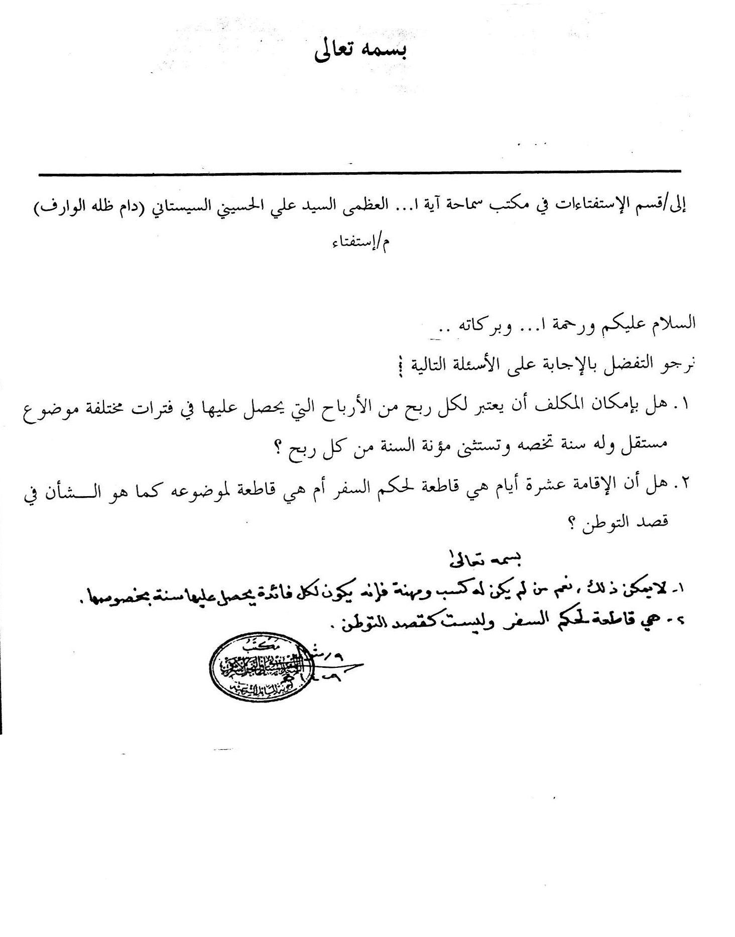 استفتاء خاص بالخمس ومدة الأقامة الشرعية