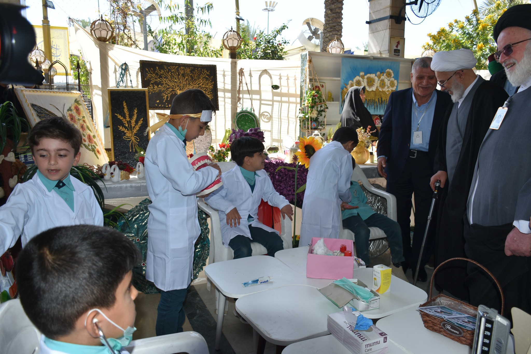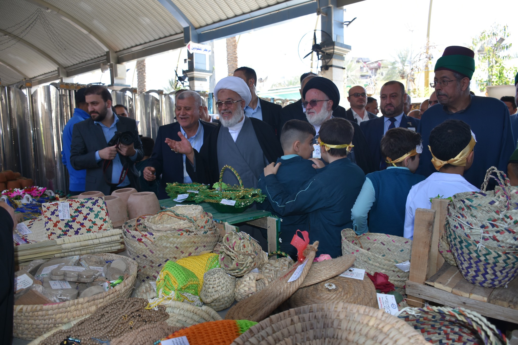وقد مثل القسم السيد عدنان جلوخان الموسوي والذي بين إن المعرض وهو عبارة عن سوق خيري لعرض وبيع نتاجات الأرامل والعوائل المتعففة لصناعات حرفية يدوية من خياطة وحياكة وصناعة اكسسوارات ونجارة وأعمال فنية كالرسم والحفر على الزجاج ولوحات خط رائعة وصناعات ريفية فلكلورية مأخوذة من سعف النخيل.