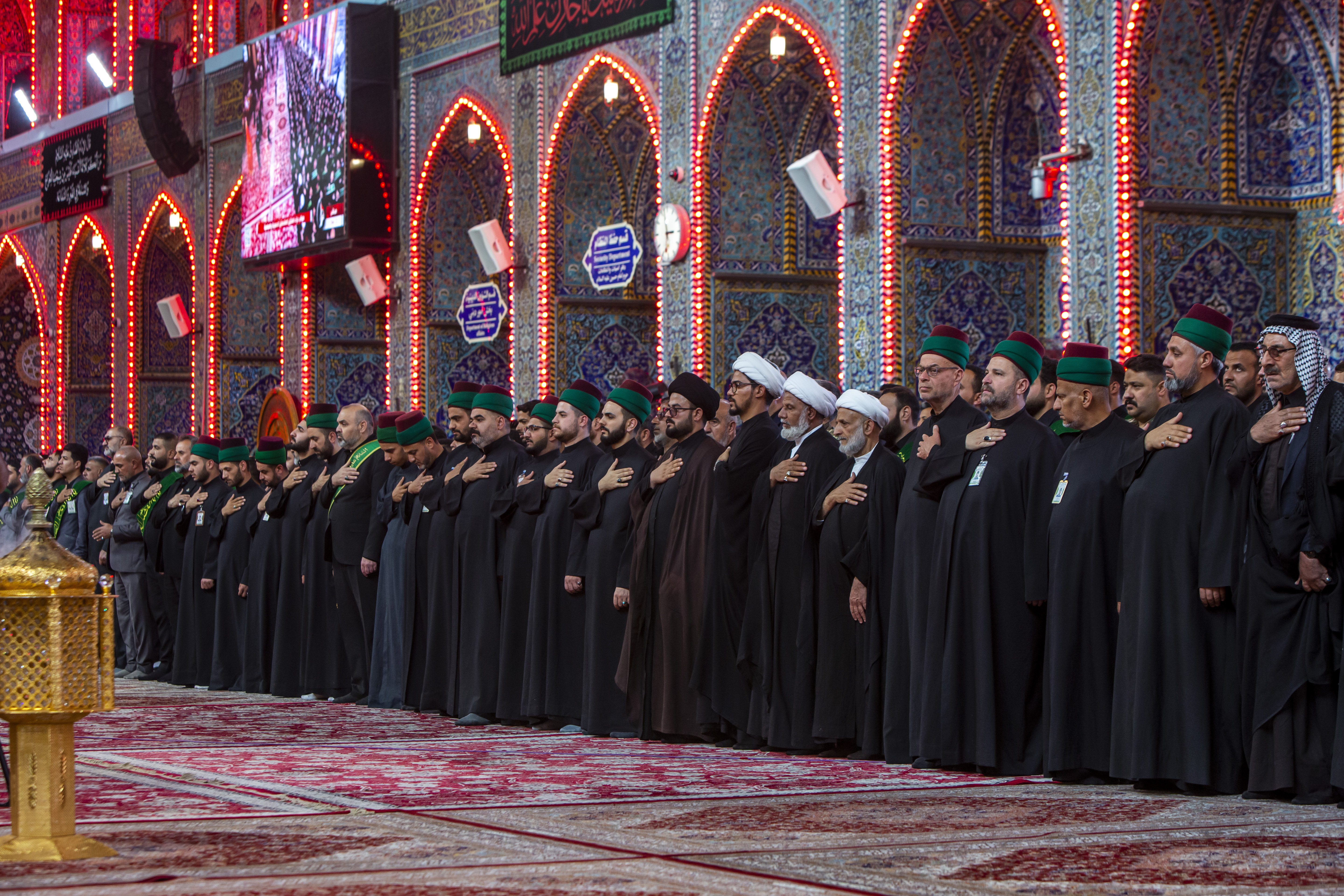 وشارك في موكب العزاء كوكبة من رجال الدين والسادة الخدم وزائري العتبتين ،واحيوا المشاركين مجلس عزاء موحّد في حرم سيد الشهداء أبي عبد الله الحسين(عليه السلام).
