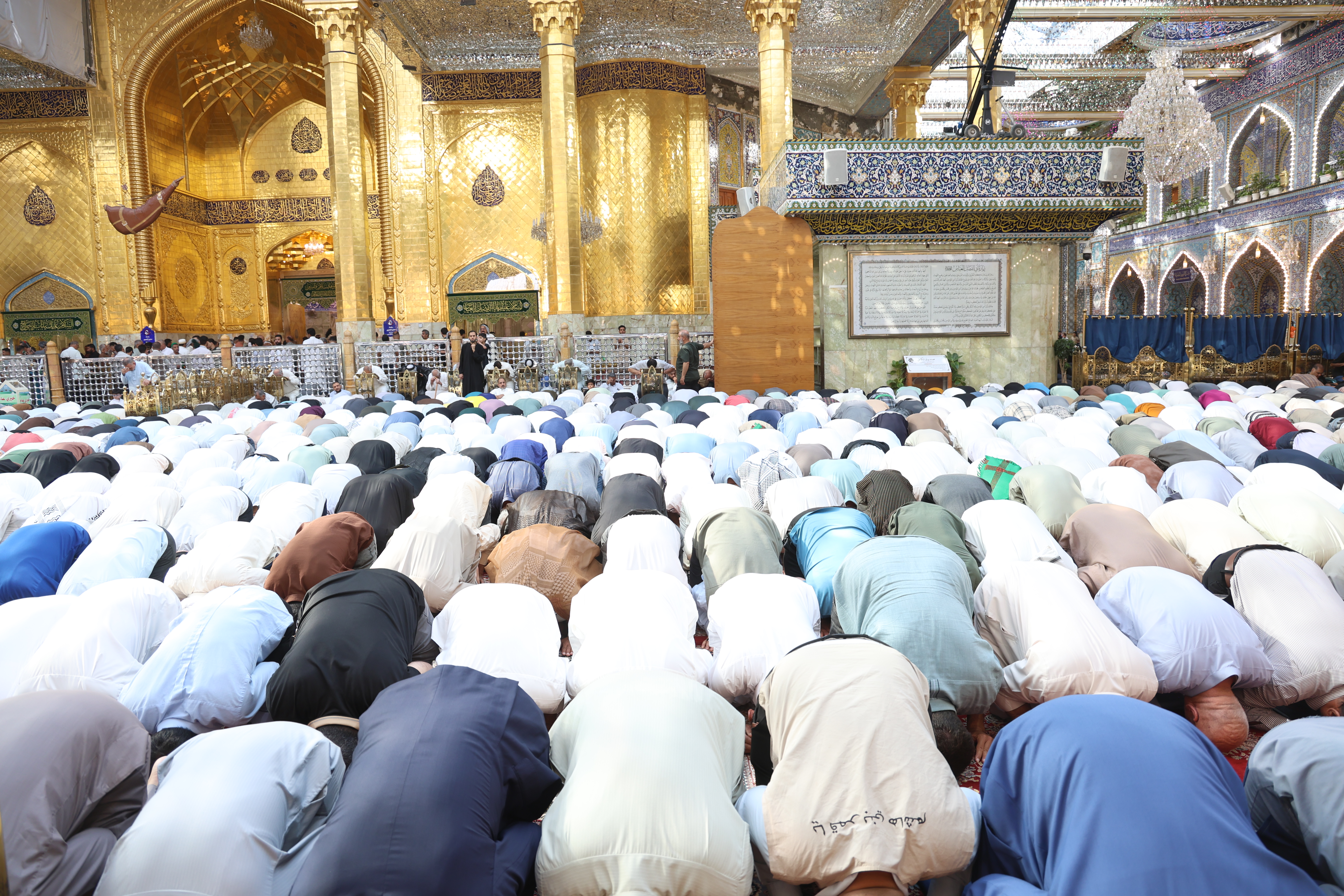 وأوضح، أنّ قسم رعاية الصحن الشريف واستكمالًا لخطة يوم عرفة وعيد الأضحى خصّص مكانًا لأداء الصلاة بما لا يعيق حركة الزائرين، وقد تكللت الجهود بتعاون الجميع بالنجاح. واستنفرت العتبة العباسية المقدسة جهودها كافّة لتقديم أفضل الخدمات لزائري الإمام الحسين وأخيه أبي الفضل العباس (عليهما السلام).