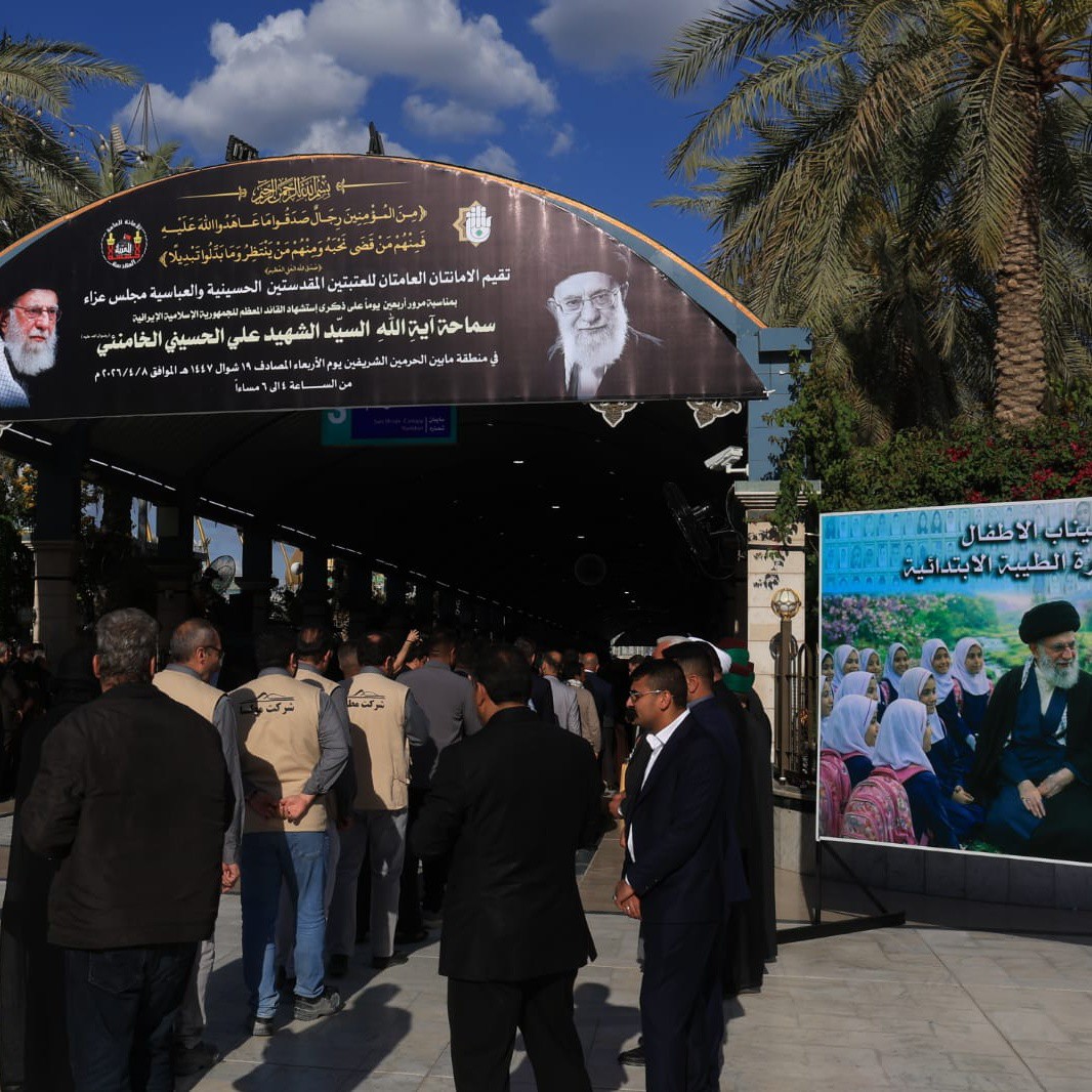 بمشاركة قسم الشؤون الدينية أقامت الأمانتان العامّتان للعتبتين المقدّستين الحسينية والعبّاسية مجلسًا تأبينيًّا بمرور أربعين يومًا على شهادة سماحة آية الله السيد علي الخامنئي (رضوان الله عليه).