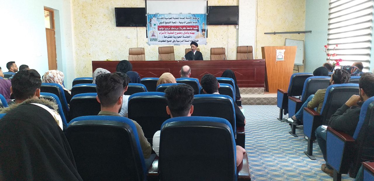 ضمن أنشطتها الثقافيّة الساعية الى توعية شريحة الطلبة الجامعيّين لما يدور حولهم من مخاطر فكريّة وعقائديّة، أقامت شعبةُ التبليغ الدينيّ في قسم الشؤون الدينيّة التابع للعتبة العبّاسية المقدّسة وضمن مشروع الجلسات الحواريّة، جلسةً حواريّة لطلبة كلّية العلوم السياحيّة في جامعة كربلاء، حملت عنوان: (دور الشباب في الوضع الراهن) وسط حضورٍ طلّابيّ كبير.