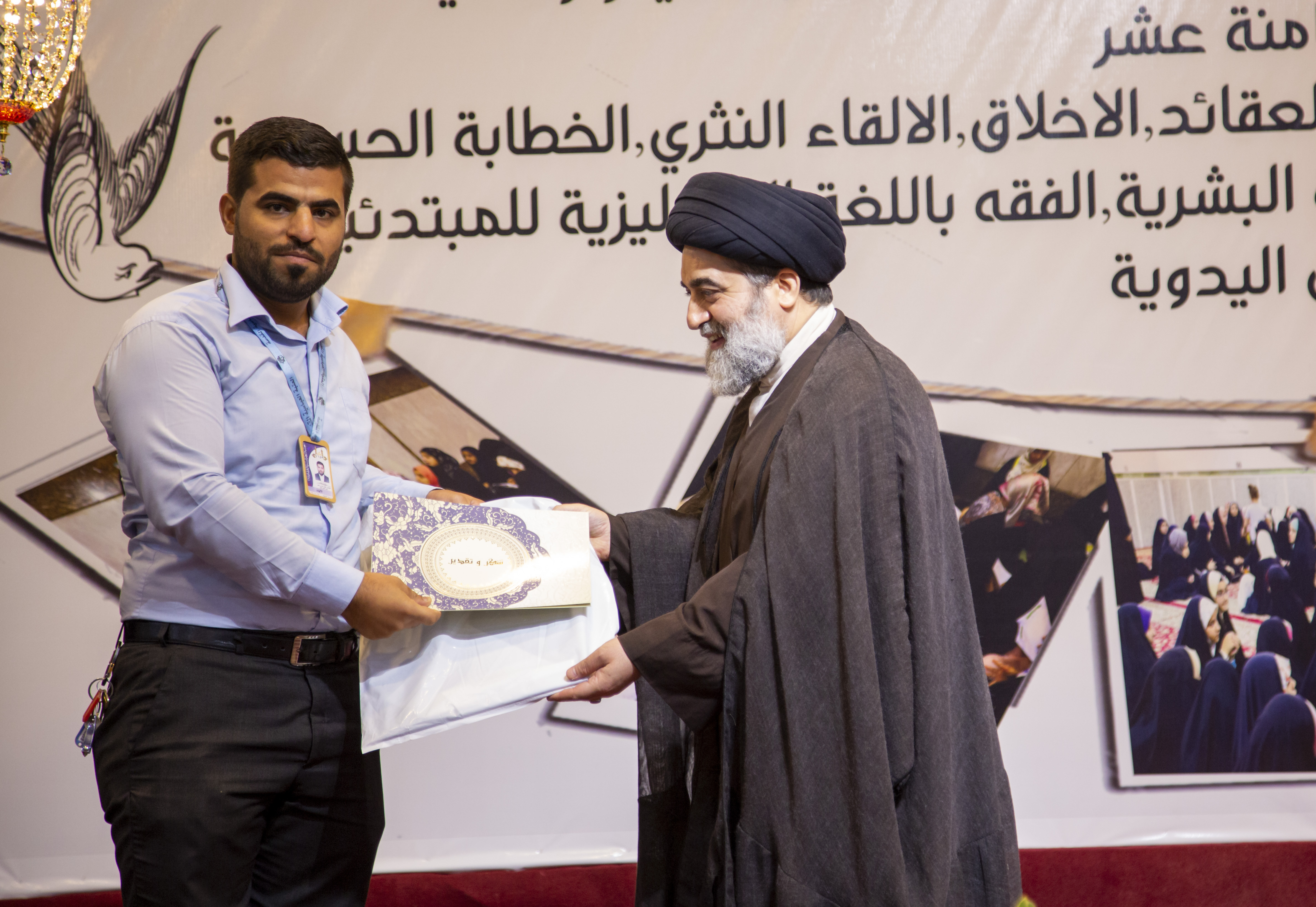 كذلك شارك القزويني بتقديم الهدايا والشهادات التقديرية للمتيزات من هذه الدورة والمساهمين في انجاحها .