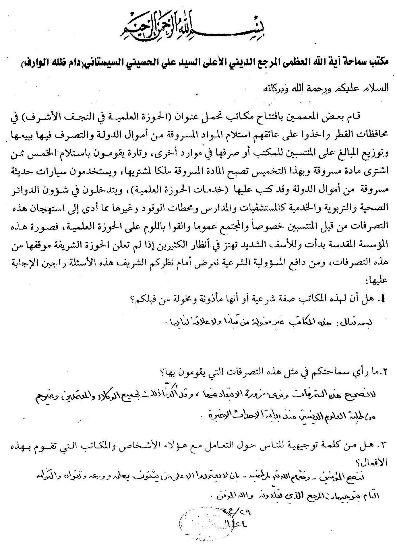 استفتاء يخص إفتتاح مكاتب تابعة للحووزة العلمية وكيفية التأكد من شرعية عملها